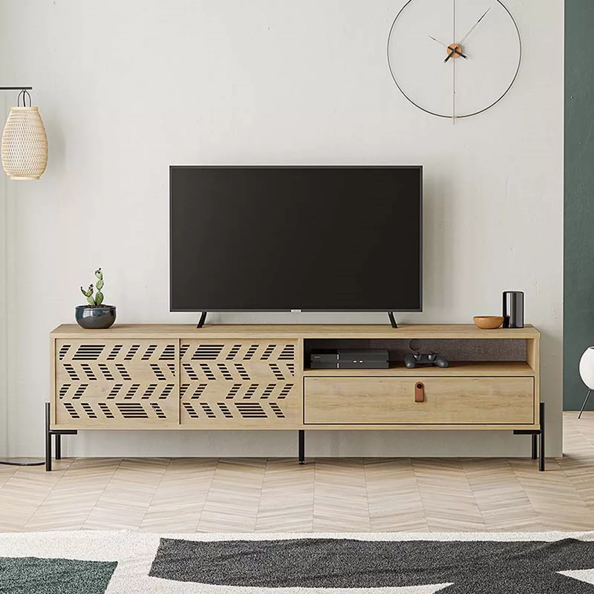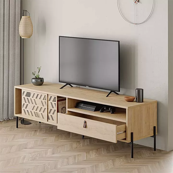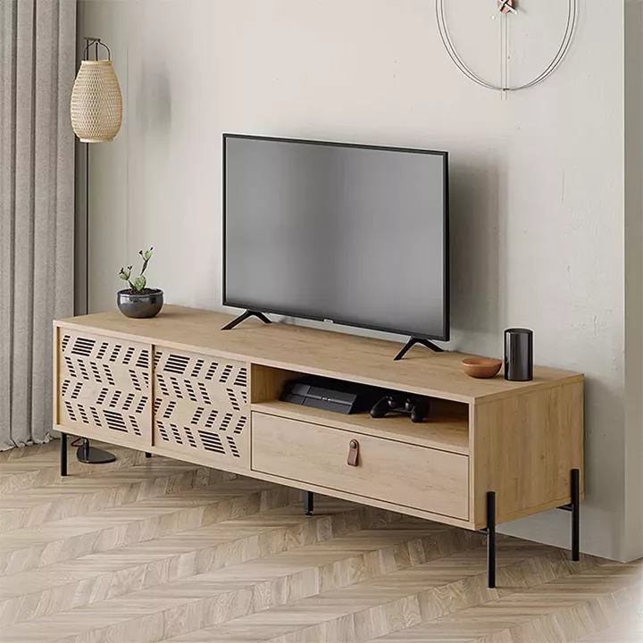 Έπιπλο τηλεόρασης Dionysos Megapap από μελαμίνη χρώμα φυσικό οξιάς 170x45x48,6εκ.