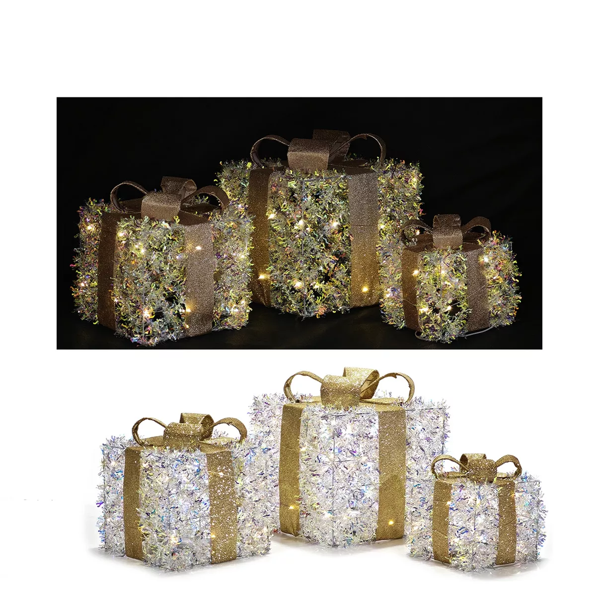 Χριστουγεννιάτικο Σετ Πακέτα Δώρων Με LED 3Τμχ