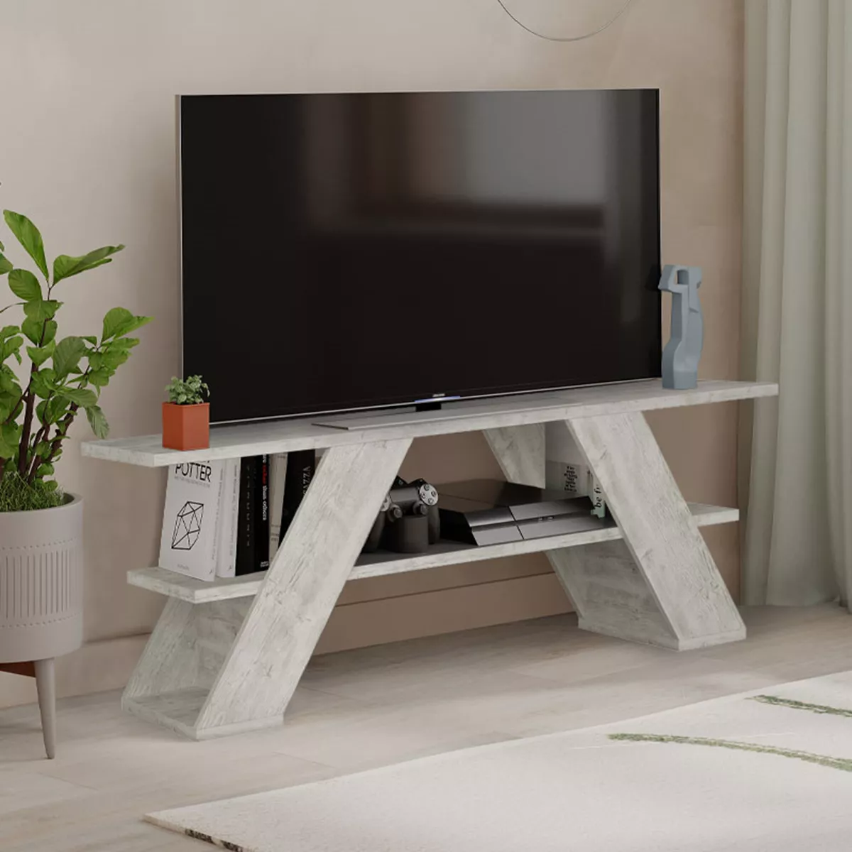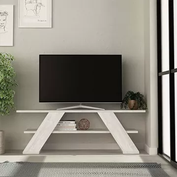 Έπιπλο τηλεόρασης Farfalla Megapap από μελαμίνη χρώμα λευκό αντικέ 120x33,5x40εκ.