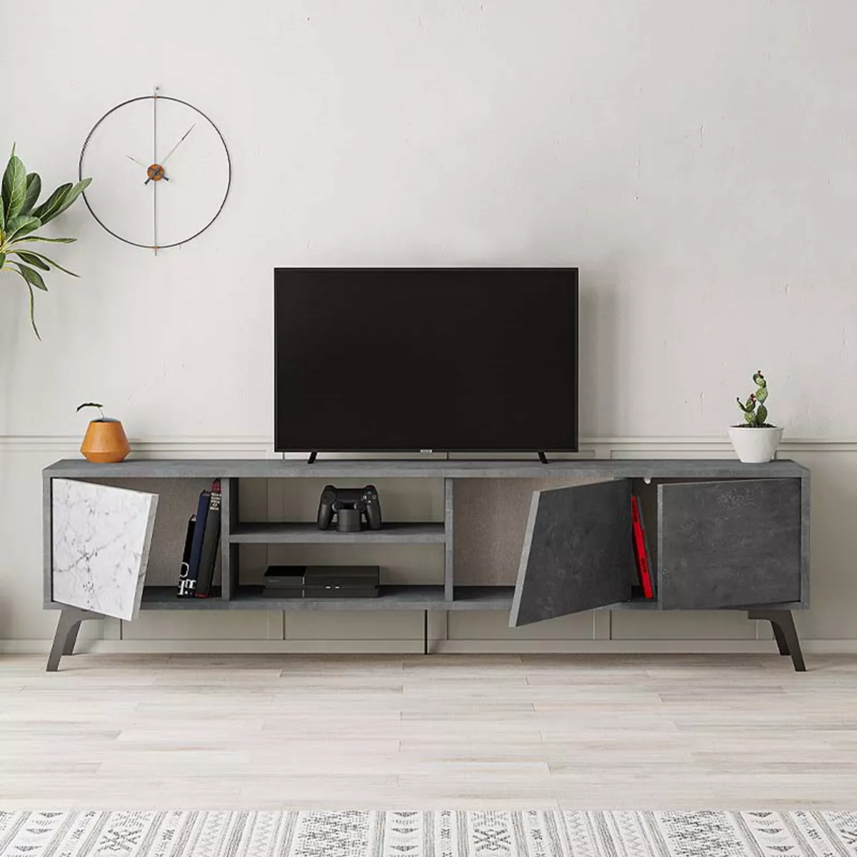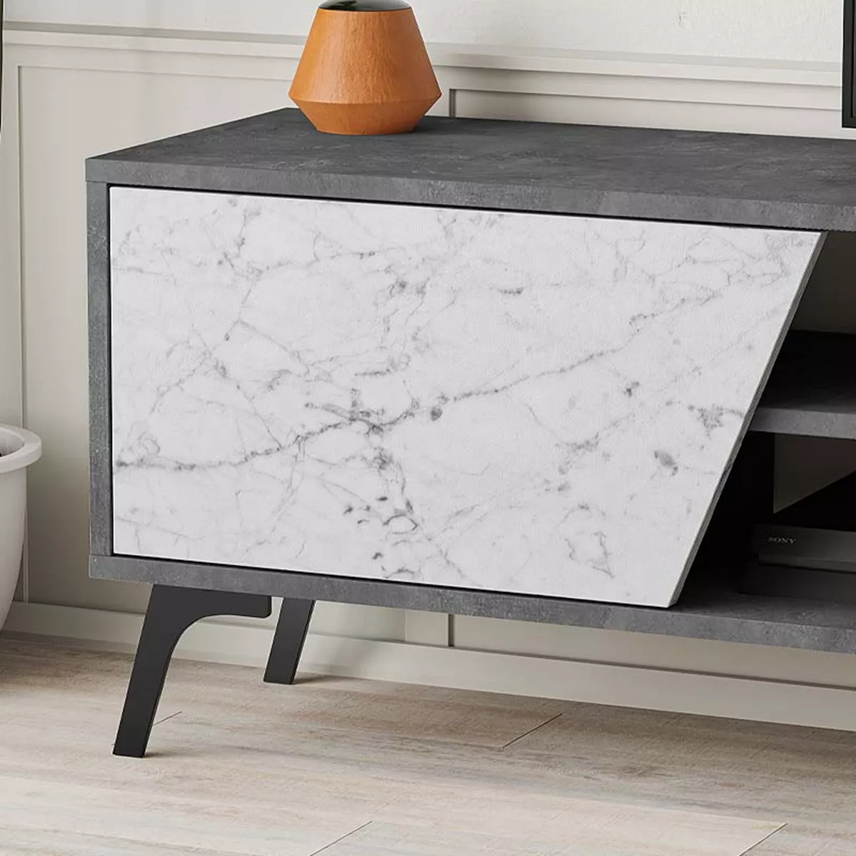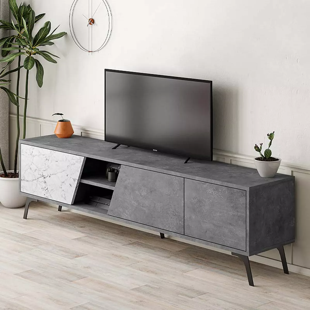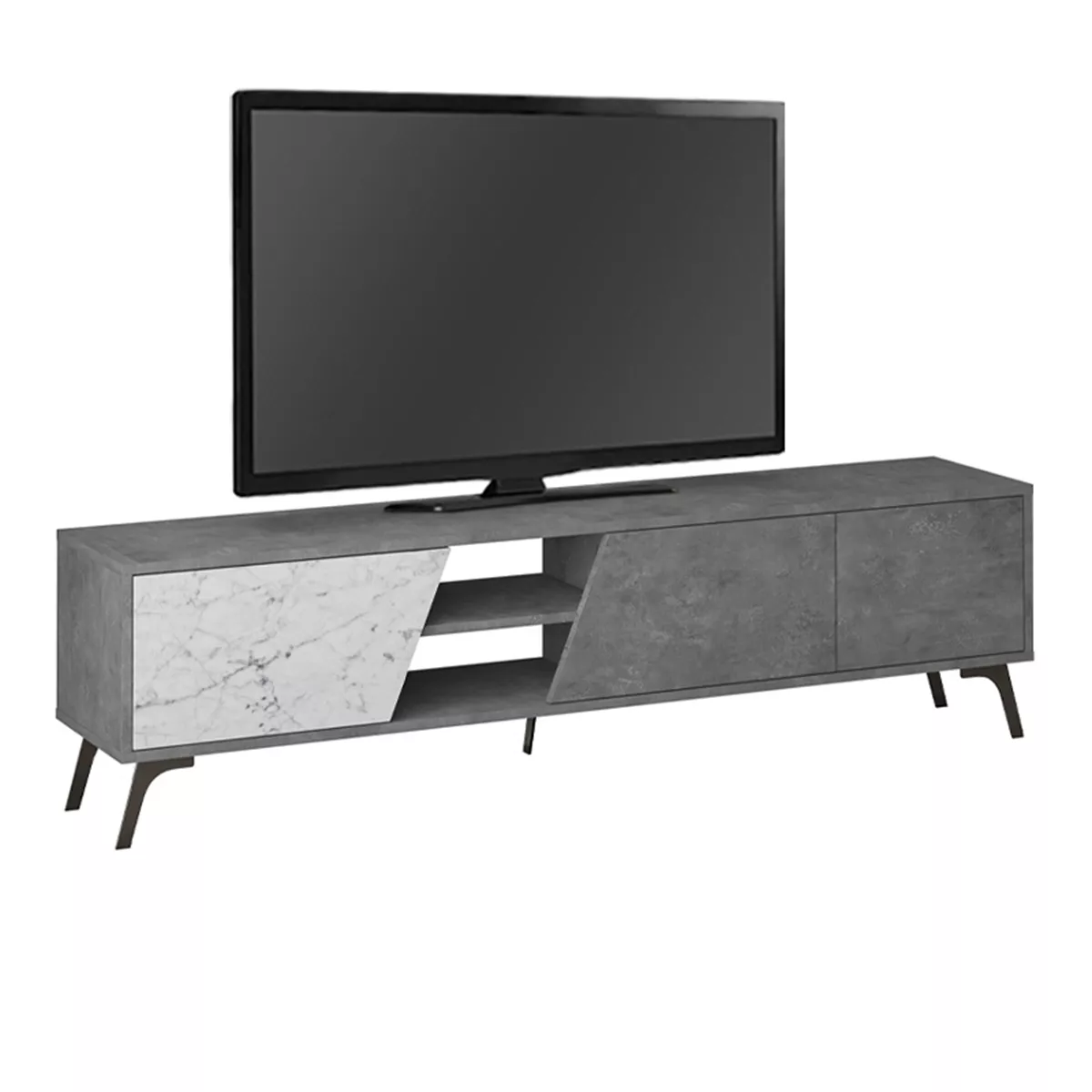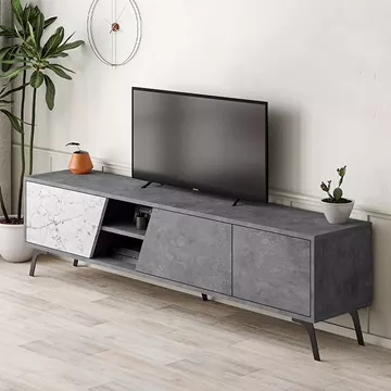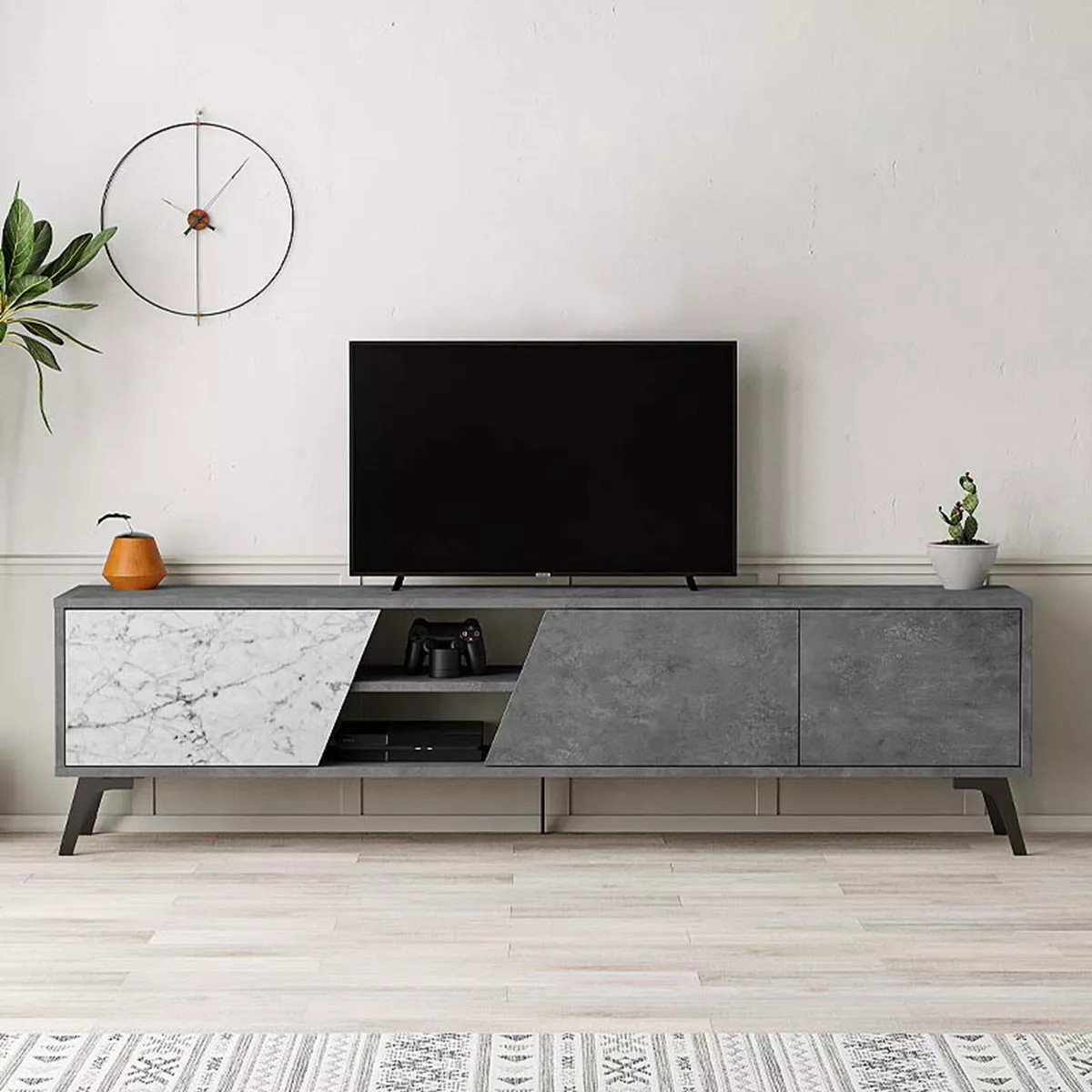 Έπιπλο τηλεόρασης Fiona Megapap από μελαμίνη χρώμα γκρι ρετρό - λευκό εφέ μαρμάρου 180x35,6x48εκ.