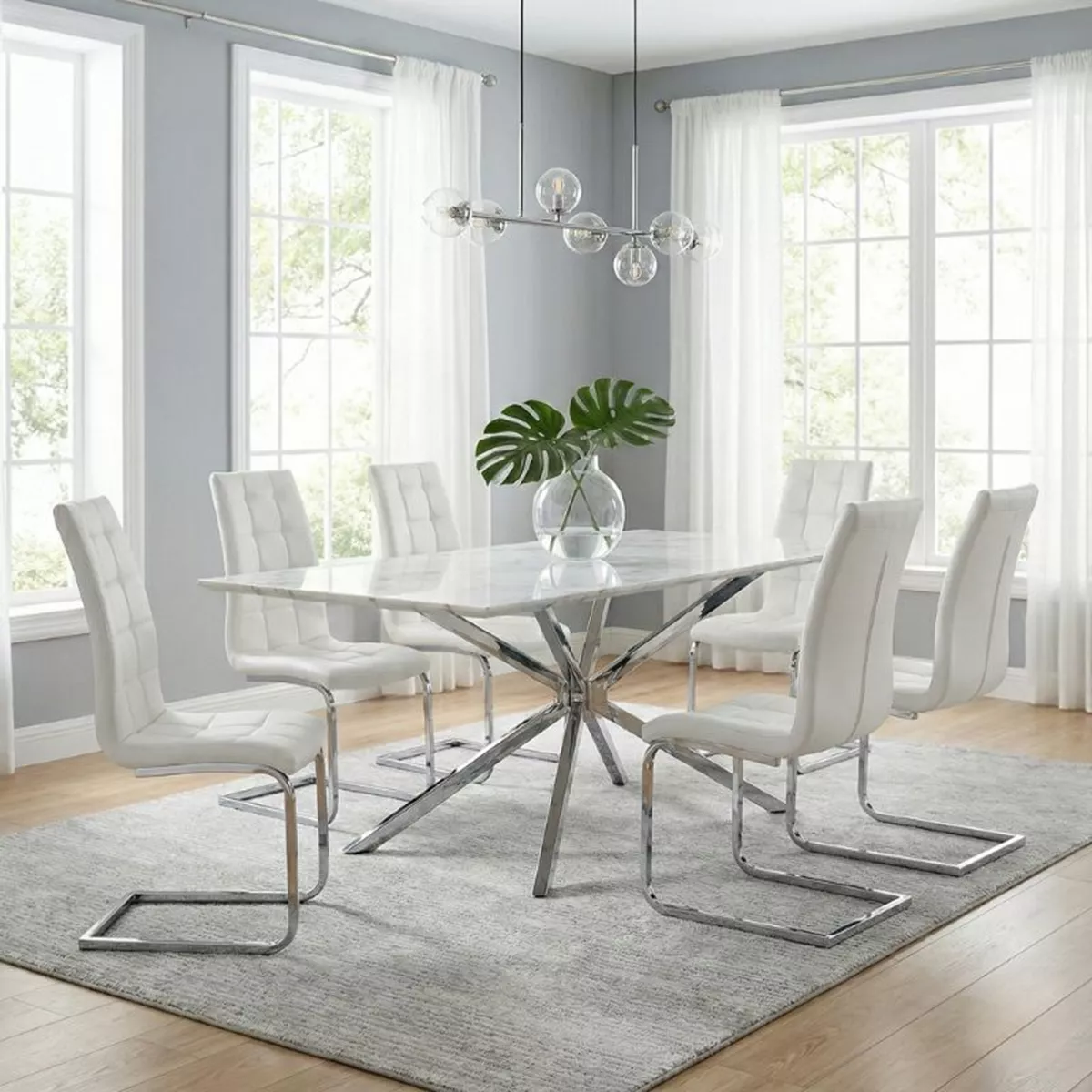Καρέκλα τραπεζαρίας Vela Megapap λευκό PU - μεταλλική βάση χρωμίου 41x61x107εκ.