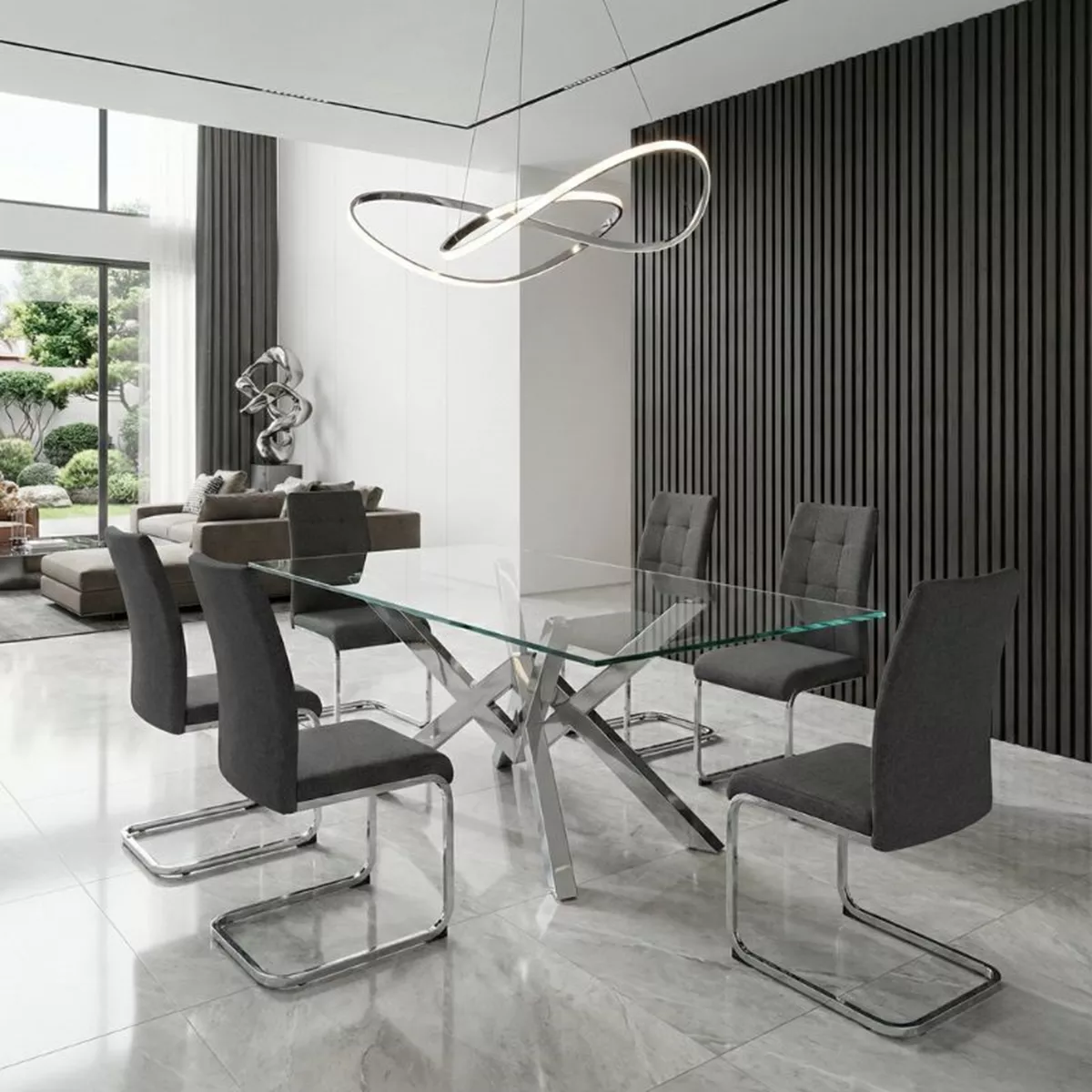 Καρέκλα τραπεζαρίας Laura Megapap γκρι ύφασμα - μεταλλική βάση χρωμίου 42x58x98εκ.