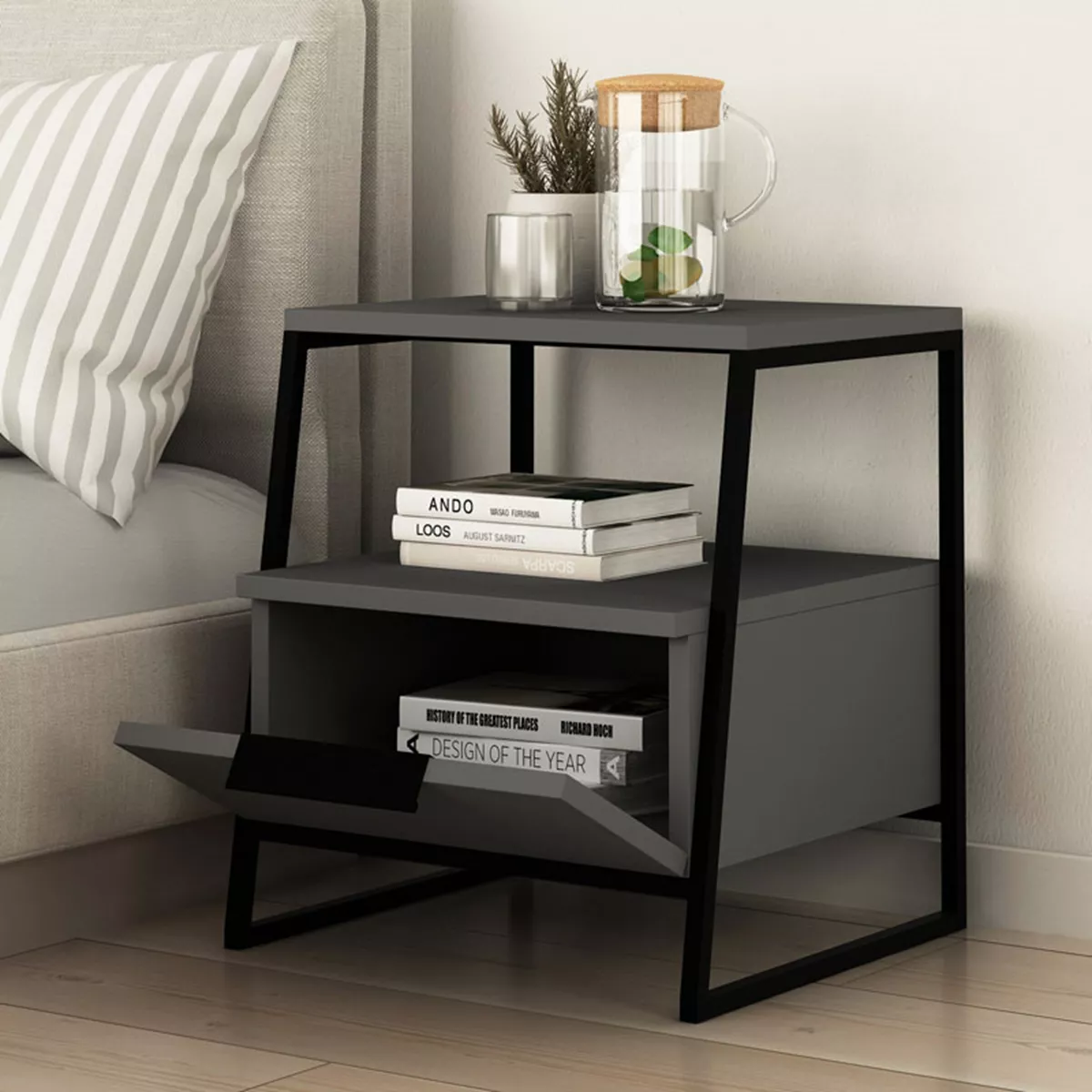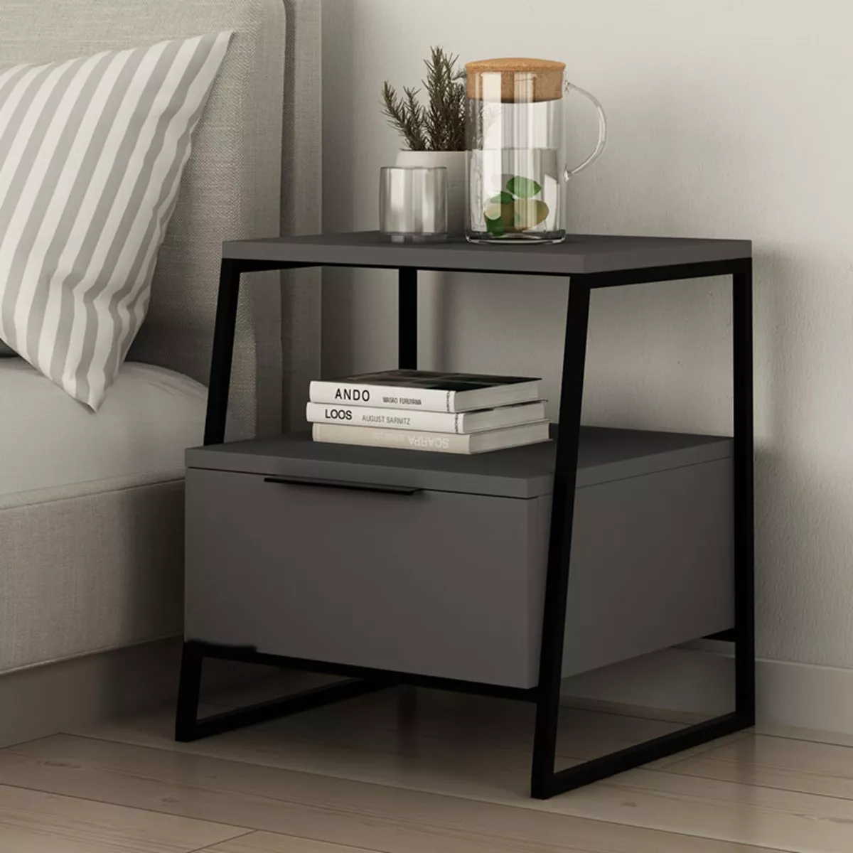 Κομοδίνο μελαμίνης Pal Megapap χρώμα ανθρακί 45x40x50εκ.