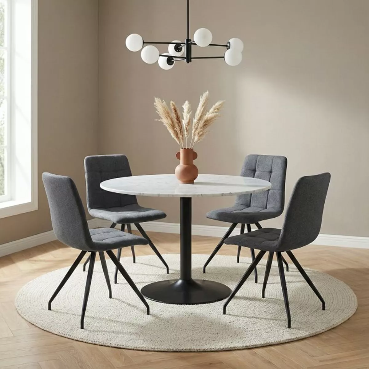 Καρέκλα τραπεζαρίας Bianca Megapap γκρι ύφασμα - μεταλλικό μαύρο πόδι 43x56x84εκ.