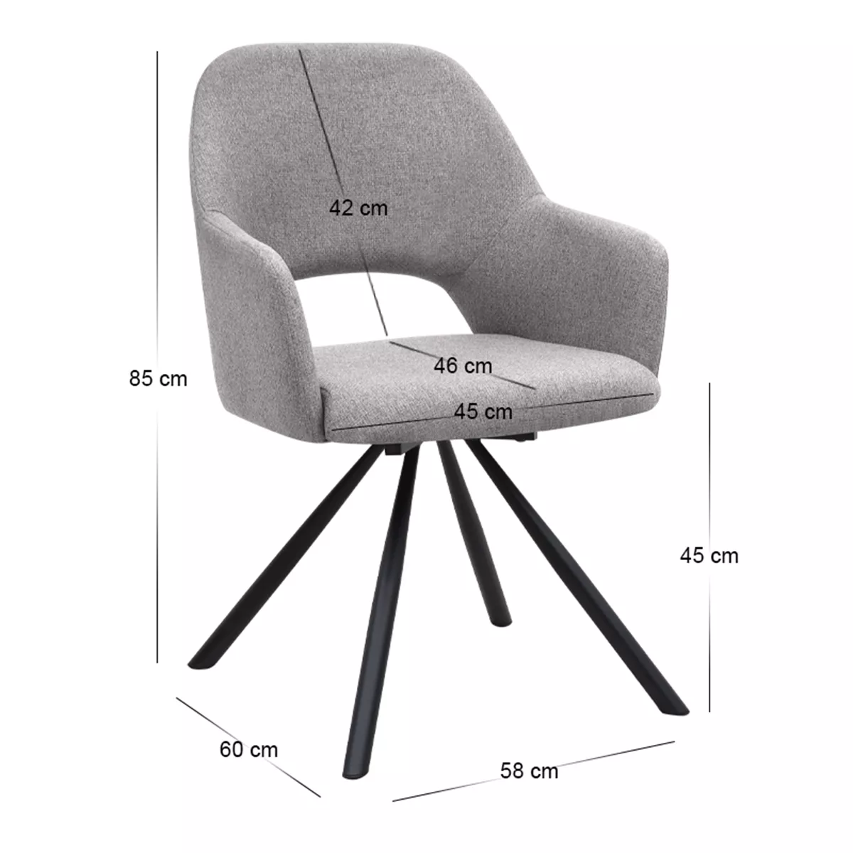 Πολυθρόνα τραπεζαρίας Gabriel Megapap μπεζ ύφασμα - μεταλλικό μαύρο πόδι 58x60x85εκ.