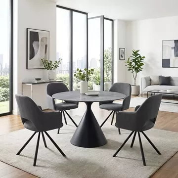 Τραπέζι Logan Megapap sintered stone - μέταλλο χρώμα γκρι εφέ μαρμάρου - μαύρο Ø120x72εκ.