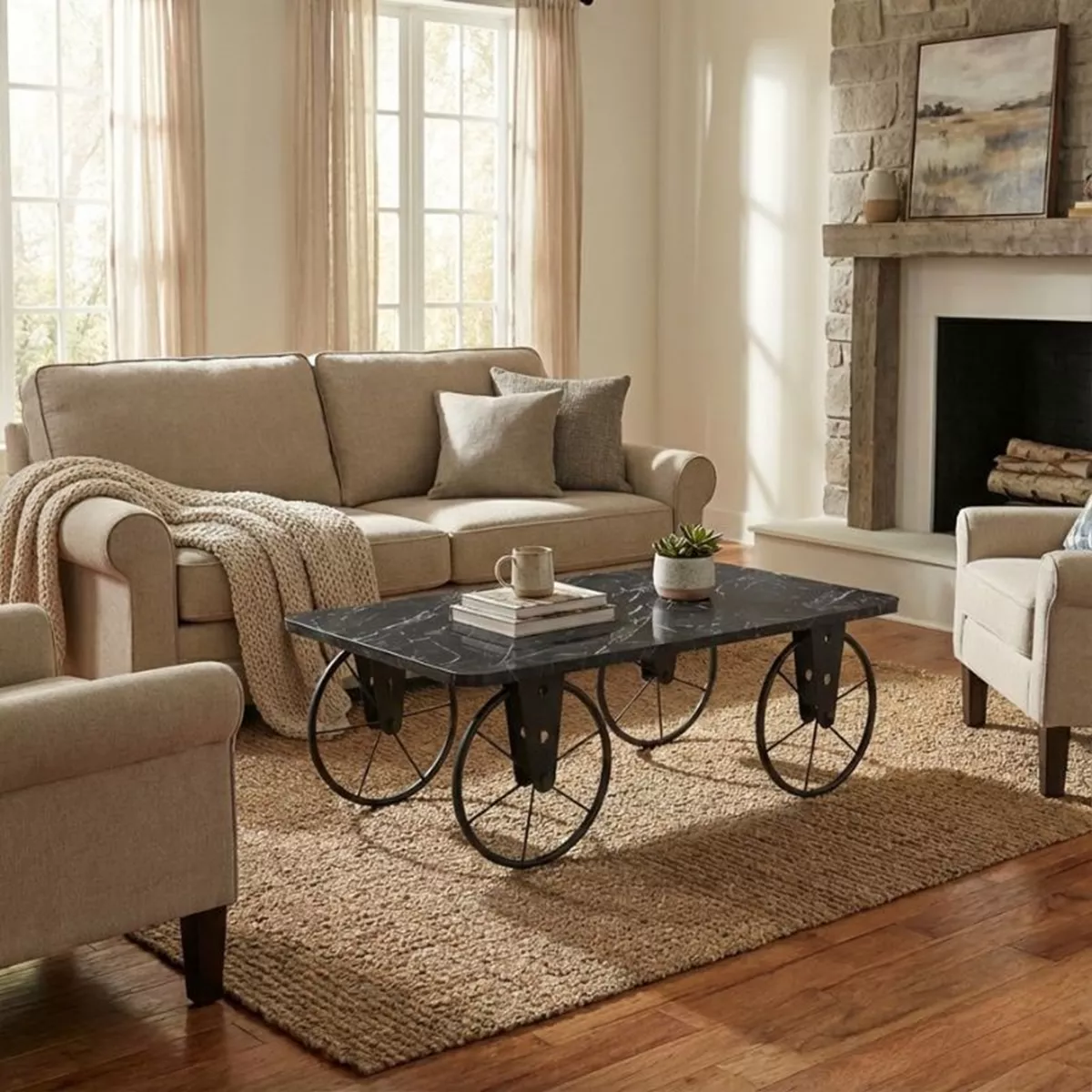Τραπεζάκι σαλονιού Jemmy Megapap Mdf - μεταλλικό χρώμα μαύρο εφέ μαρμάρου 90x55x33εκ.
