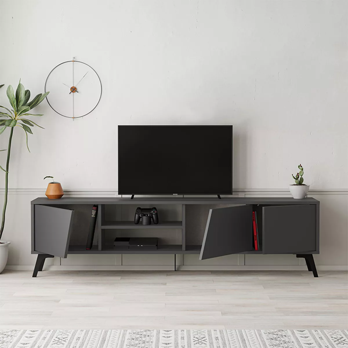 Έπιπλο τηλεόρασης Fiona Megapap χρώμα ανθρακί 180x35,6x48εκ.