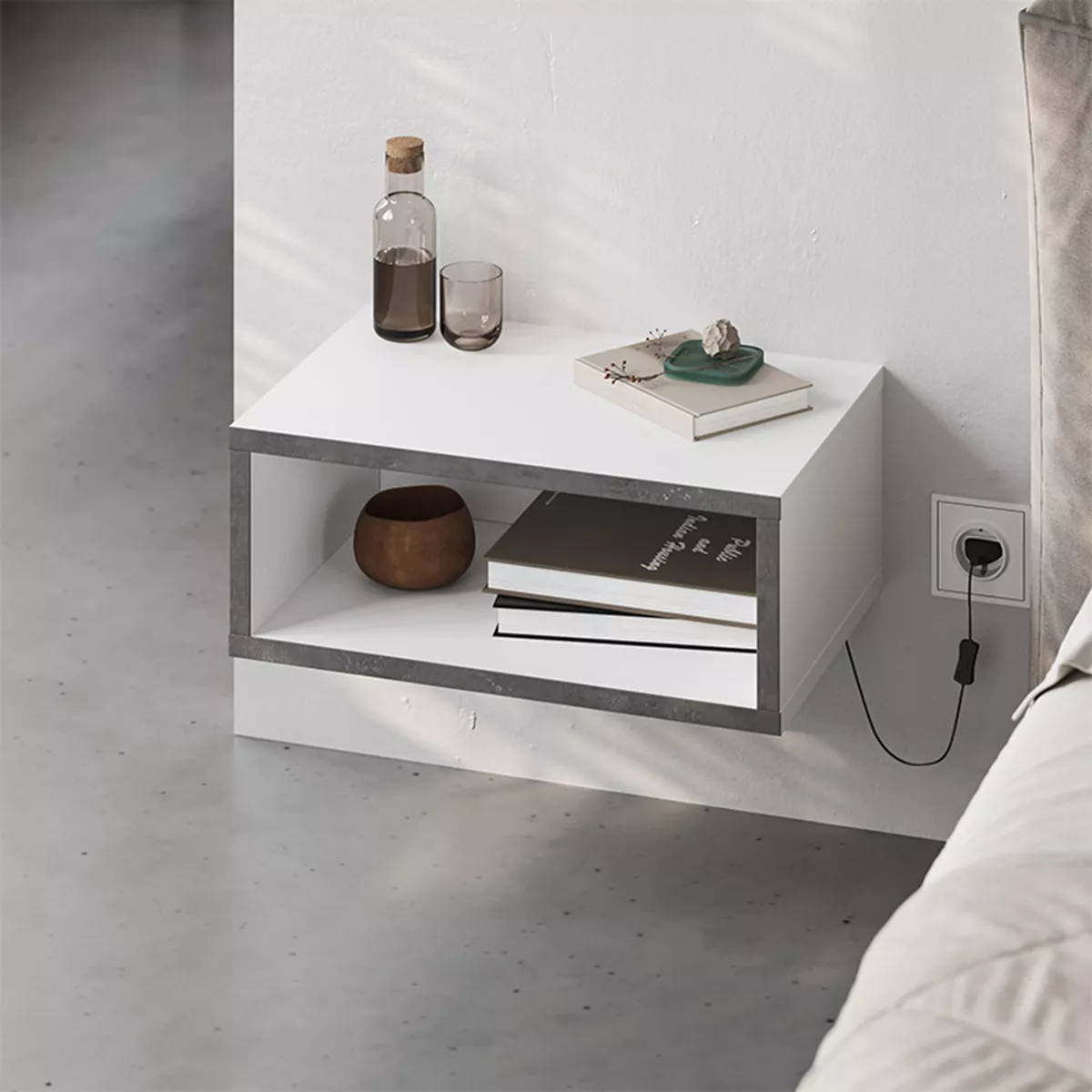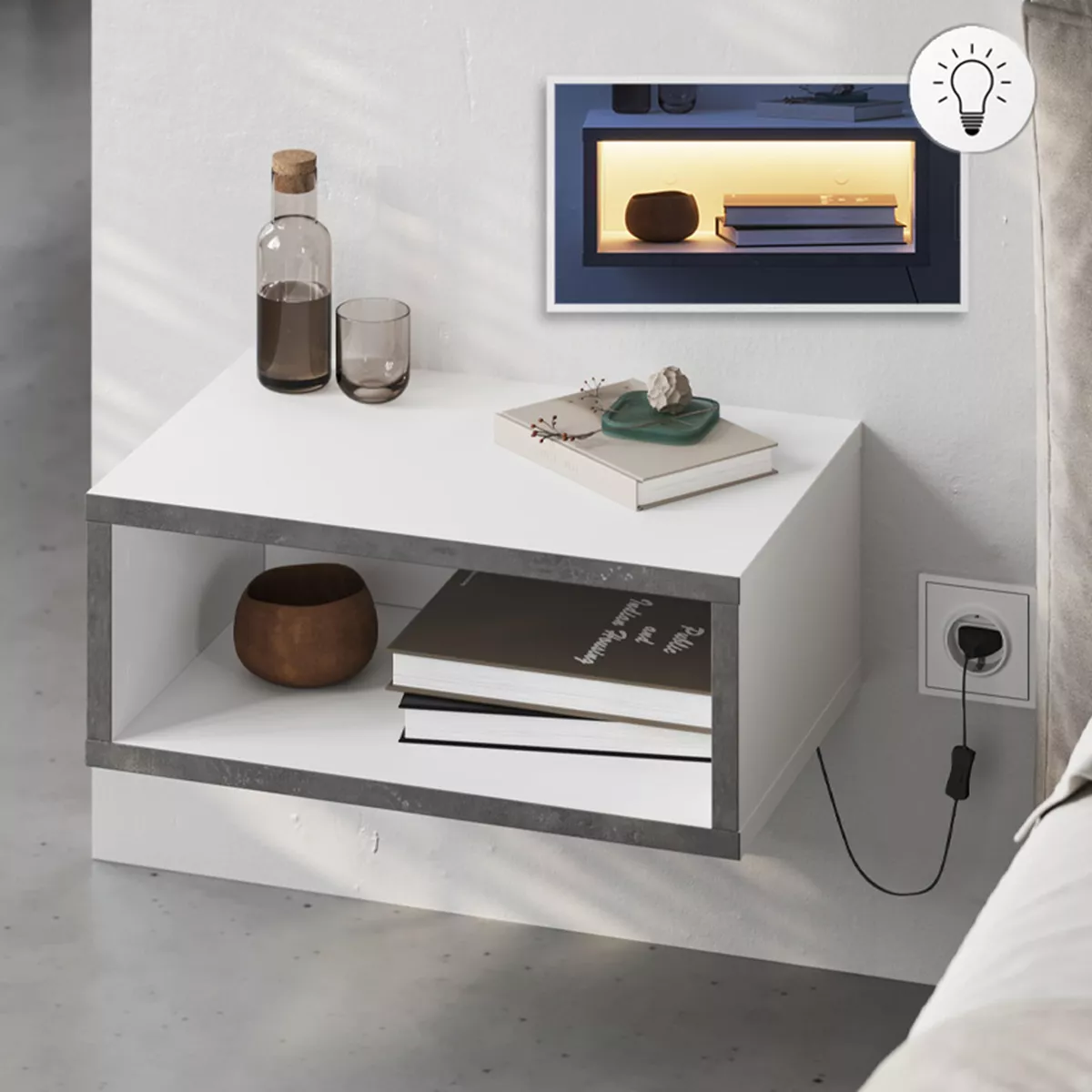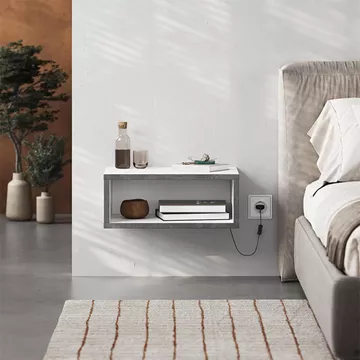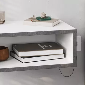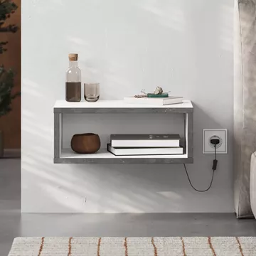 Κομοδίνο επιτοίχιο Brik Megapap με LED χρώμα λευκό - γκρι ρετρό 45x30x18εκ.