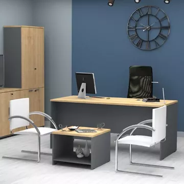 Τραπεζάκι γραφείου επαγγελματικό Venturo Megapap χρώμα ανθρακί - φυσικό οξιάς 60x60x45εκ.