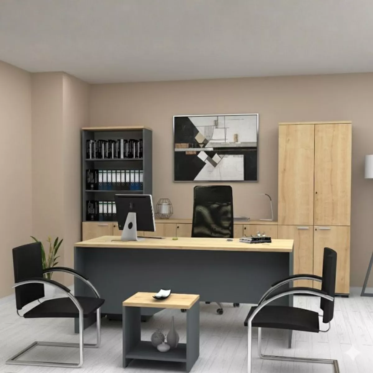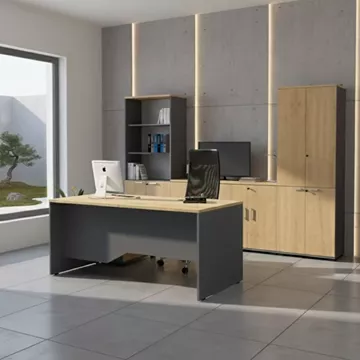 Ντουλάπα γραφείου επαγγελματική Venturo Megapap χρώμα ανθρακί - φυσικό οξιάς 80x40x200εκ.