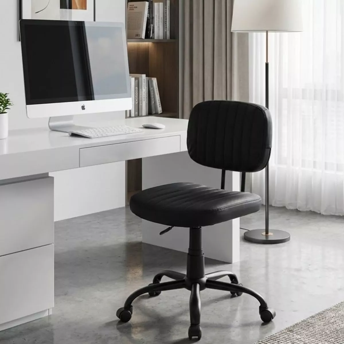 Καρέκλα γραφείου Romano Megapap από τεχνόδερμα χρώμα μαύρο 46x53x79/86εκ.
