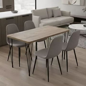 Σετ τραπεζαρία 5τμχ Roger - Iris Megapap Mdf - ύφασμα χρώμα ακακίας - ανοιχτό μπεζ 120x70x75εκ.
