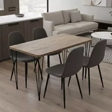 Σετ τραπεζαρία 5τμχ Roger - Iris Megapap Mdf - ύφασμα χρώμα ακακίας - γκρι 120x70x75εκ.