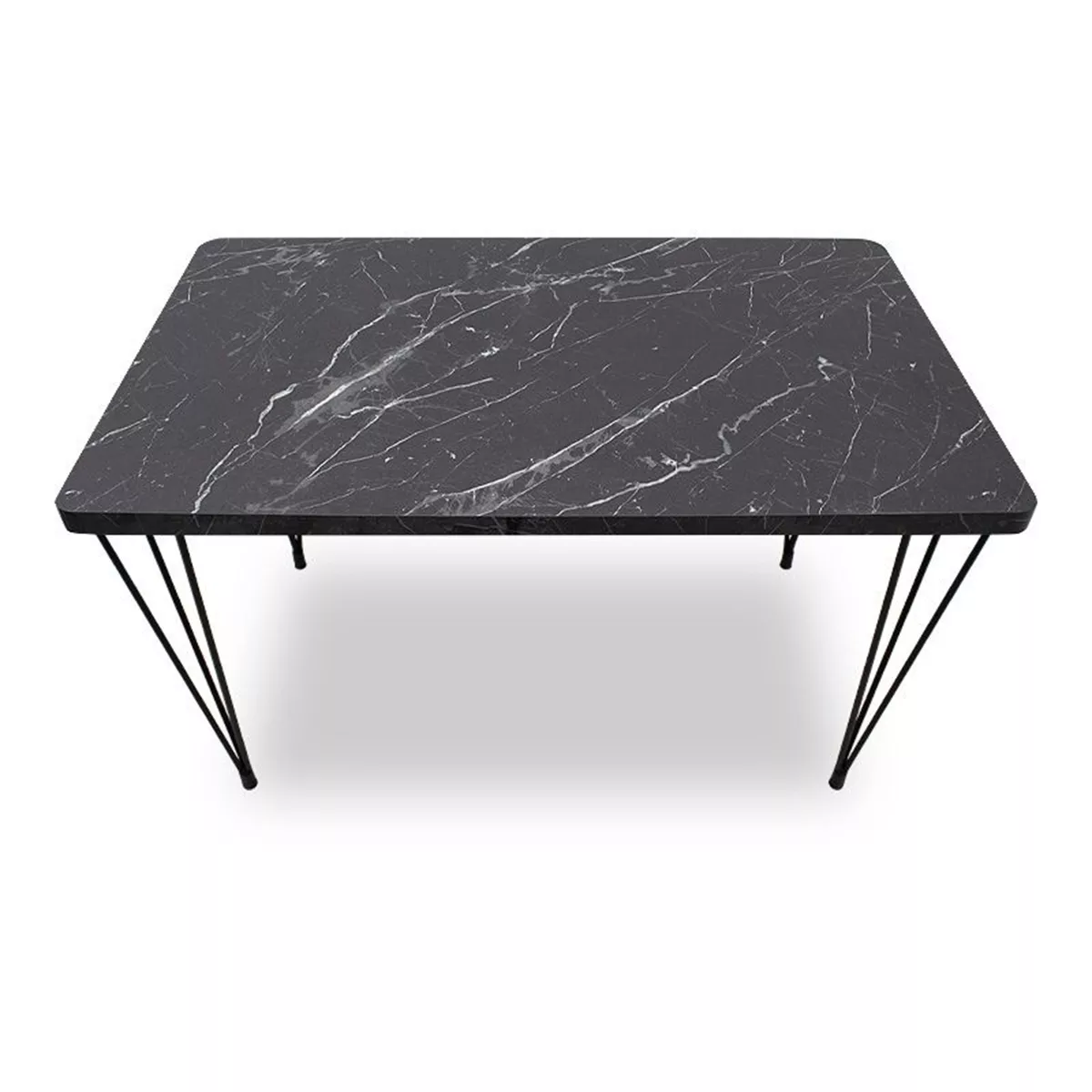 Σετ τραπεζαρία 5τμχ Roger - Christy Megapap Mdf - ύφασμα χρώμα μαύρο εφέ μαρμάρου - μουσταρδί 120x70x75εκ.