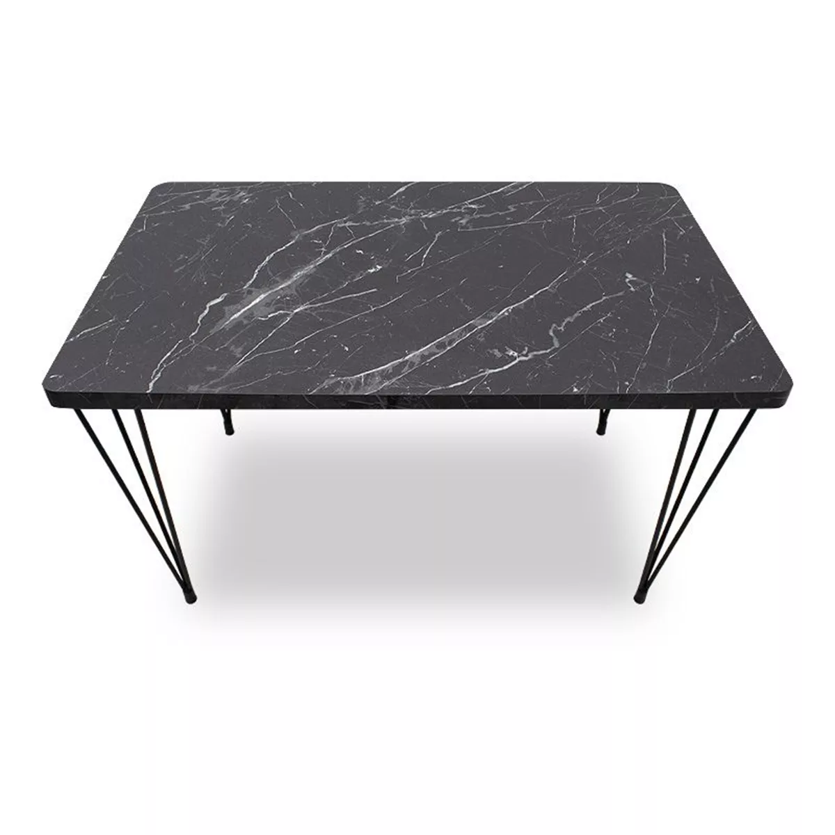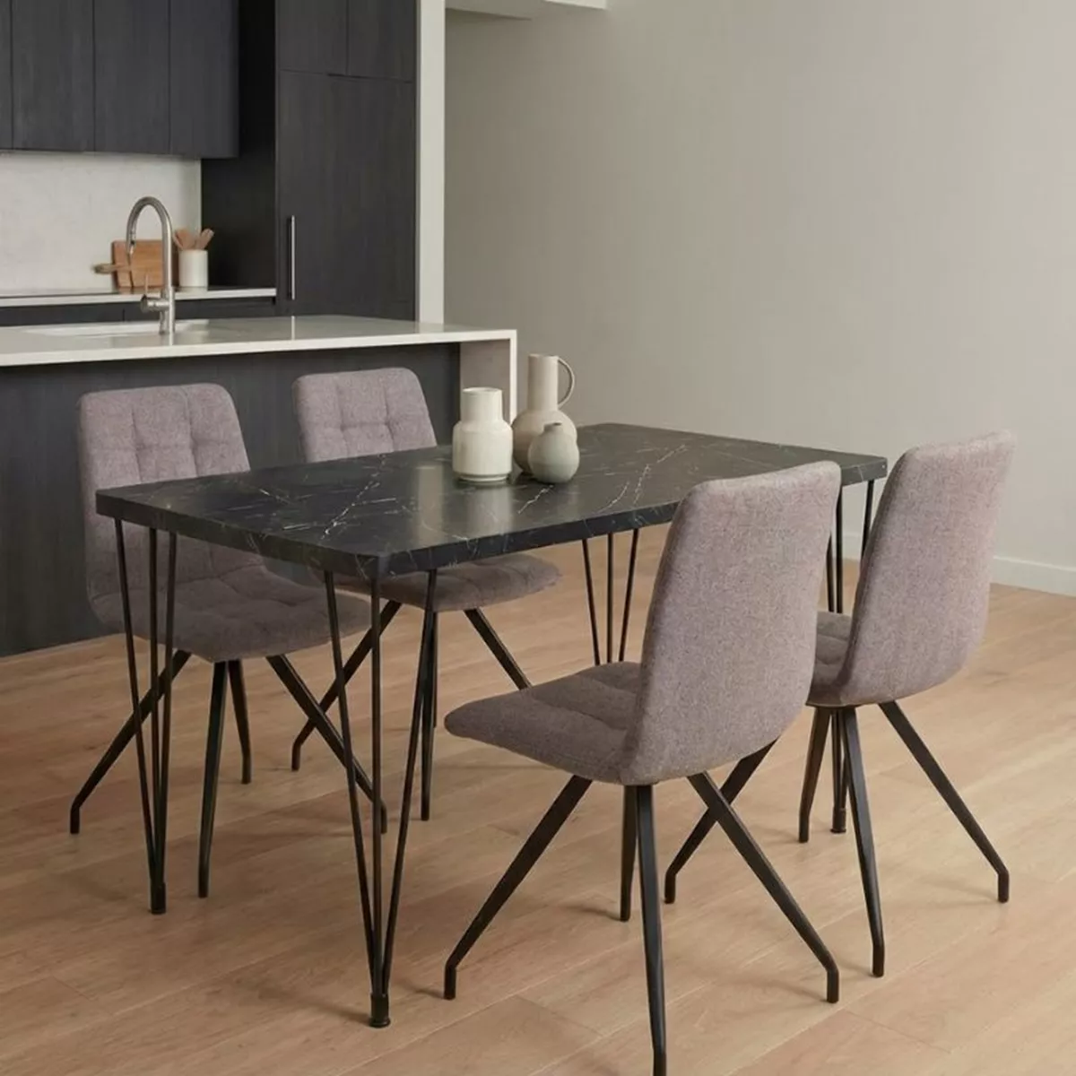 Σετ τραπεζαρία 5τμχ Roger - Bianca Megapap Mdf - ύφασμα χρώμα μαύρο εφέ μαρμάρου - ανοιχτό μπεζ 120x70x75εκ.