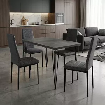 Σετ τραπεζαρία 5τμχ Roger - Rosa Megapap Mdf - ύφασμα χρώμα σκούρο γκρι σκυροδέματος - γκρι 120x70x75εκ.