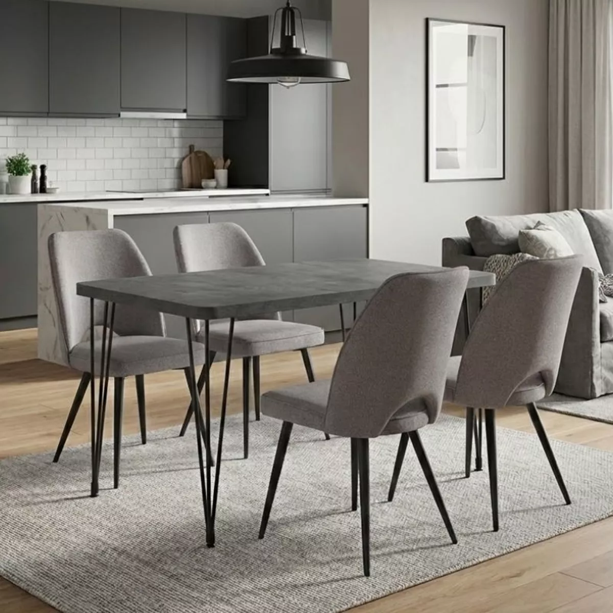 Σετ τραπεζαρία 5τμχ Roger - Christy Megapap Mdf - ύφασμα χρώμα σκούρο γκρι σκυροδέματος - ανοιχτό μπεζ 120x70x75εκ.