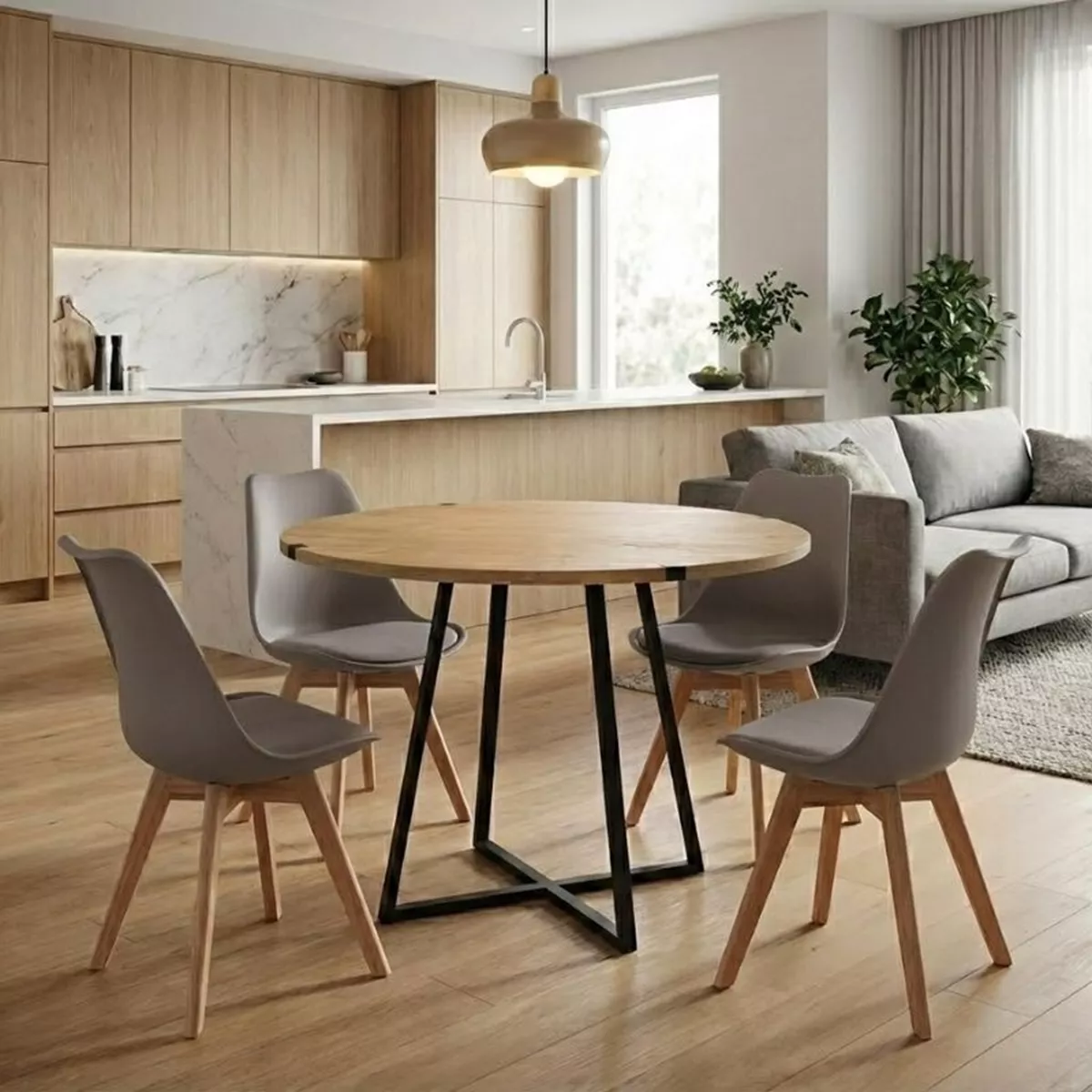 Σετ τραπεζαρία 5τμχ Rubes - Viva Megapap χρώμα φυσικό οξιάς - cappuccino Ø100x78εκ.