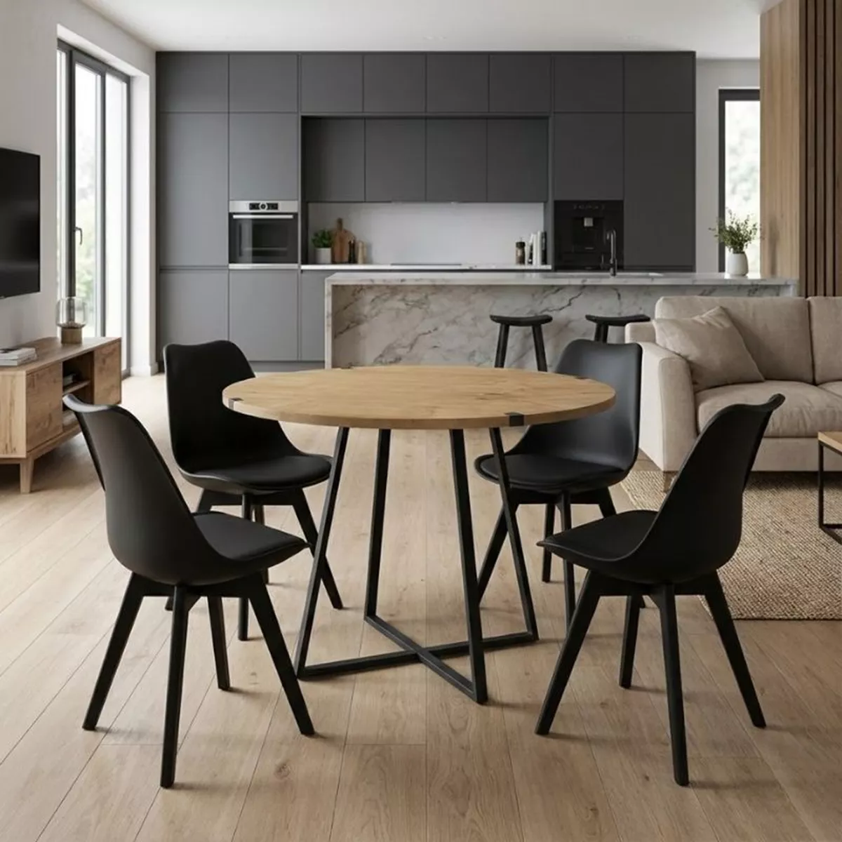 Σετ τραπεζαρία 5τμχ Rubes - Viva Megapap χρώμα φυσικό οξιάς - μαύρο Ø100x78εκ.Σετ τραπεζαρία 5τμχ Rubes - Viva Megapap χρώμα φυσικό οξιάς - μαύρο Ø100x78εκ.