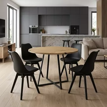 Σετ τραπεζαρία 5τμχ Rubes - Viva Megapap χρώμα φυσικό οξιάς - μαύρο Ø100x78εκ.