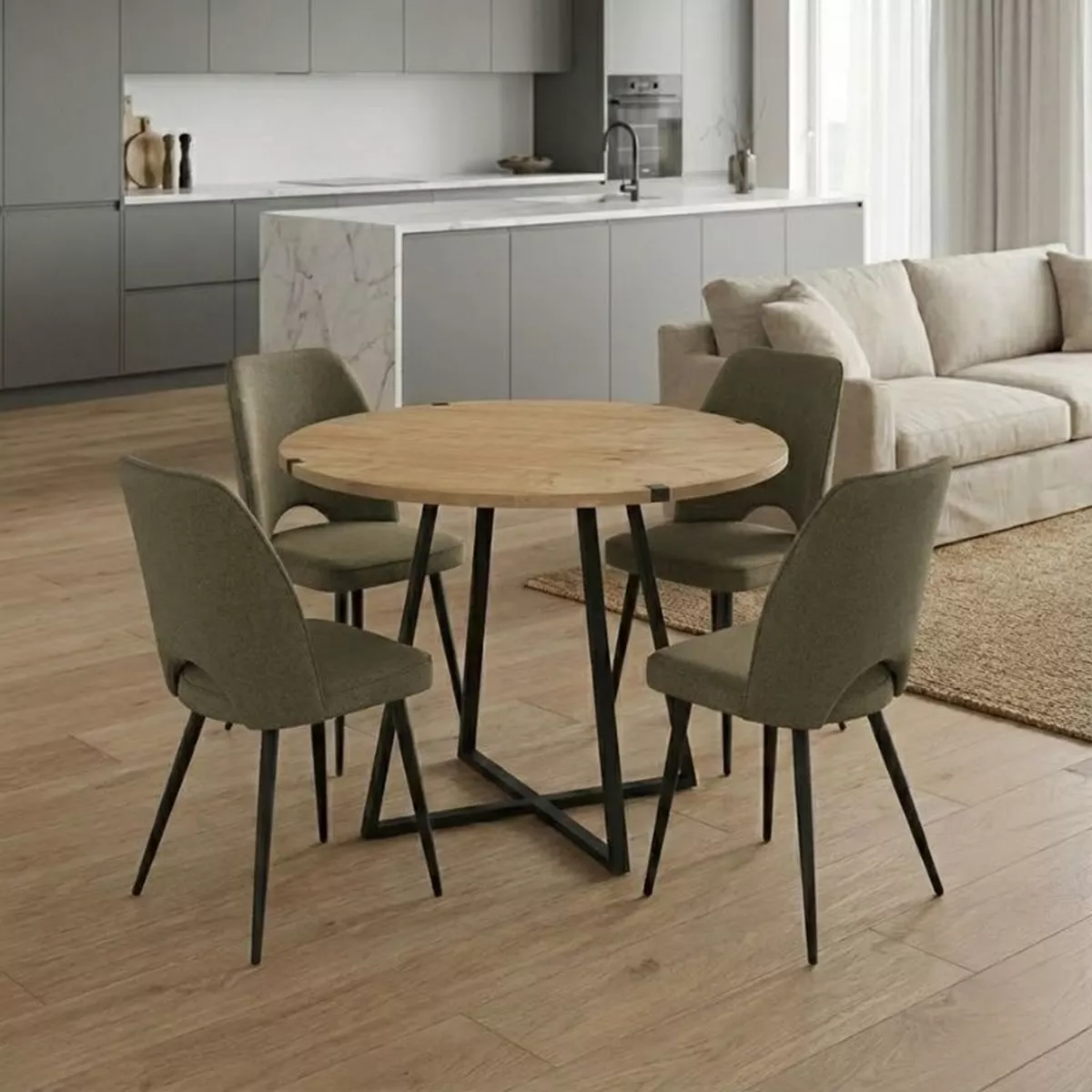 Σετ τραπεζαρία 5τμχ Rubes - Christy Megapap χρώμα φυσικό οξιάς - λαδί Ø100x78εκ.