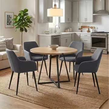 Σετ τραπεζαρία 5τμχ Rubes - Monica Megapap χρώμα φυσικό οξιάς - γκρι Ø100x78εκ.