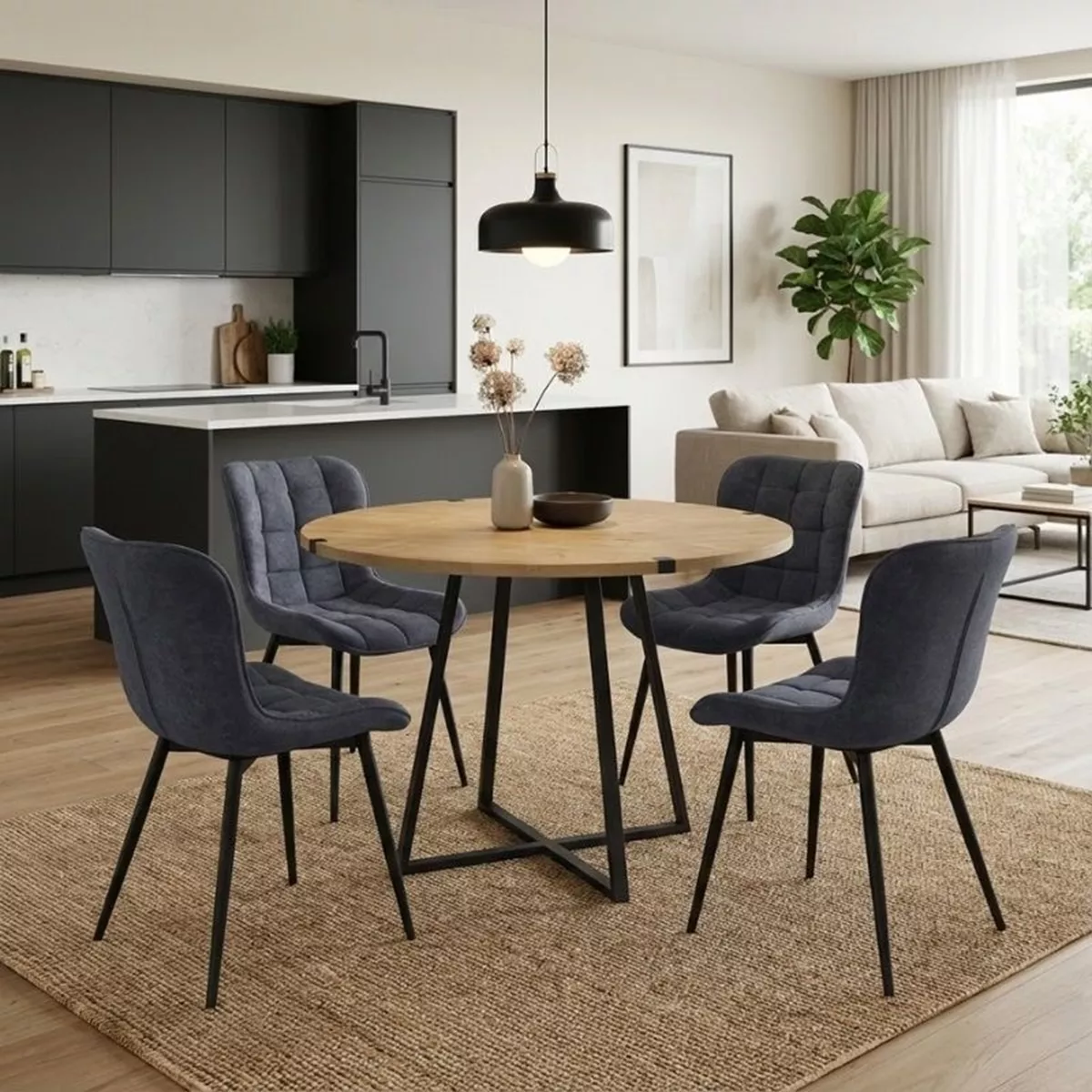 Σετ τραπεζαρία 5τμχ Rubes - Chiara Megapap χρώμα φυσικό οξιάς - ανθρακί Ø100x78εκ.