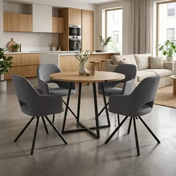 Σετ τραπεζαρία 5τμχ Rubes - Gabriel Megapap χρώμα φυσικό οξιάς - γκρι Ø100x78εκ.