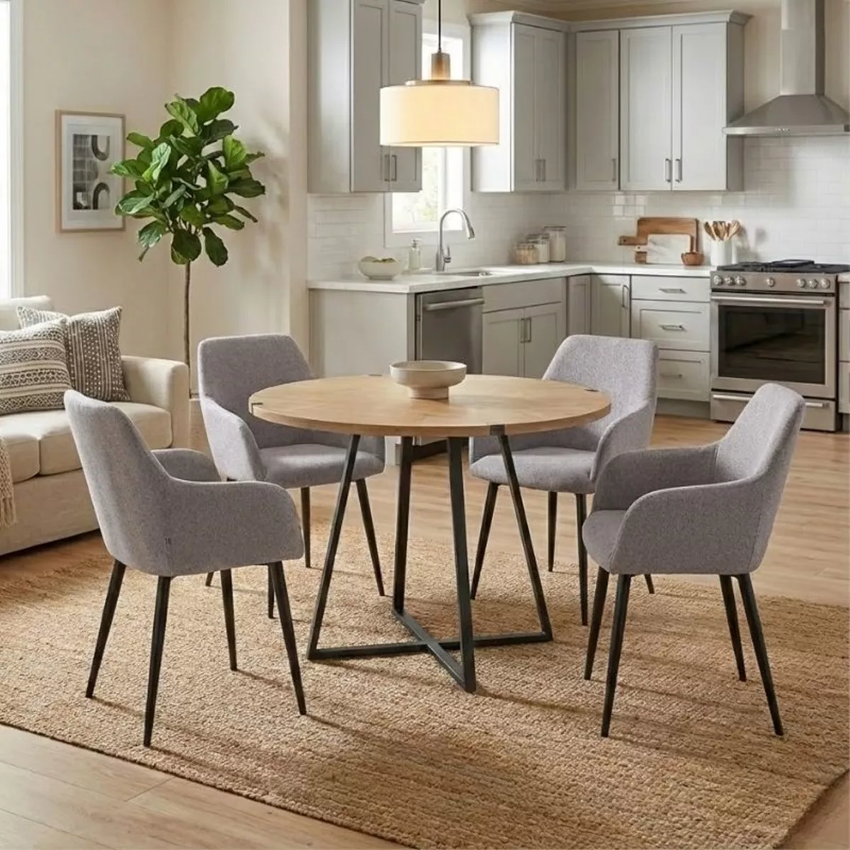 Σετ τραπεζαρία 5τμχ Rubes - Monica Megapap χρώμα φυσικό οξιάς - ανοιχτό μπεζ Ø100x78εκ.