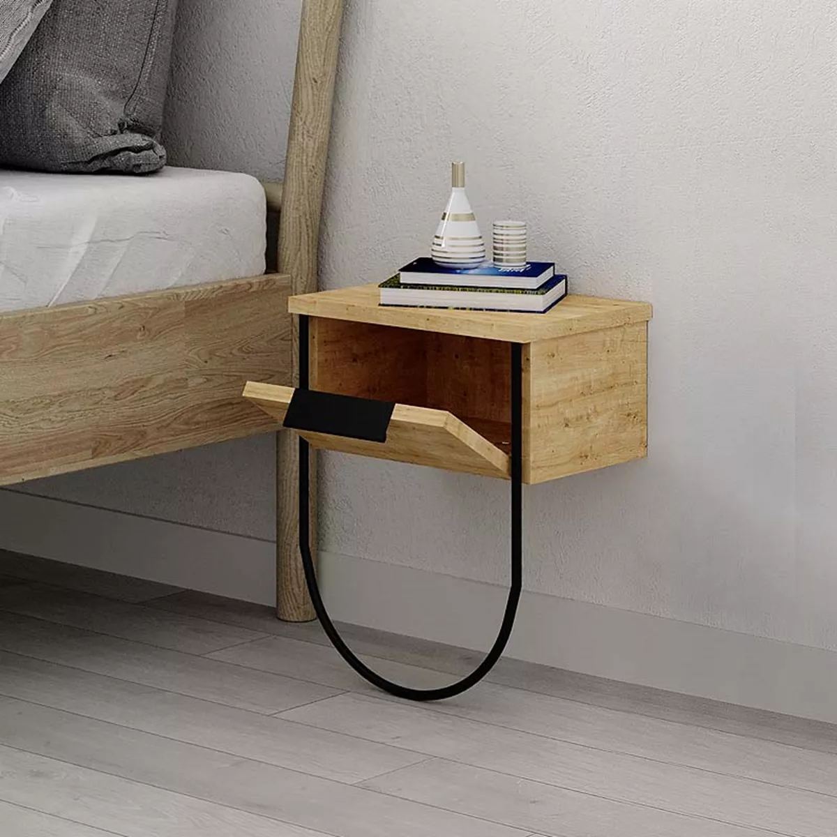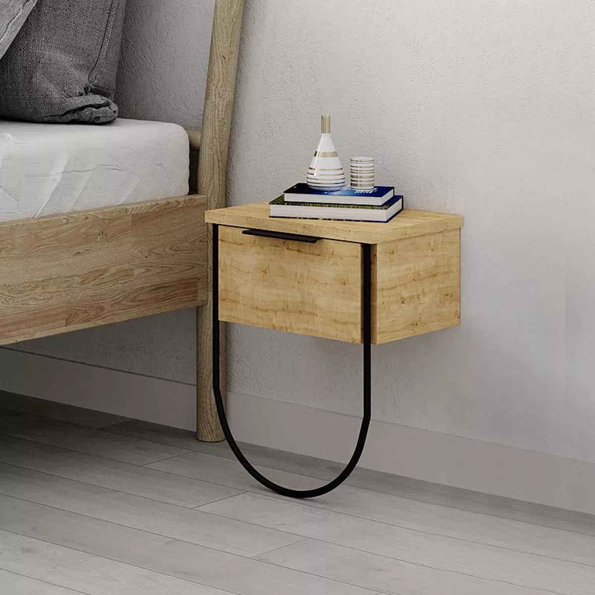 Κομοδίνο επιτοίχιο μελαμίνης Norfolk Megapap χρώμα φυσικό οξιάς 33x25x44εκ.