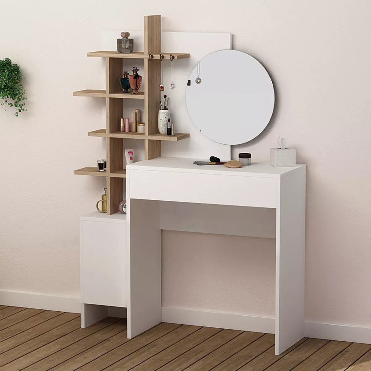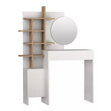 Τουαλέτα με καθρέπτη Mup Megapap από μελαμίνη χρώμα λευκό - φυσικό οξιάς 105x35x151εκ.