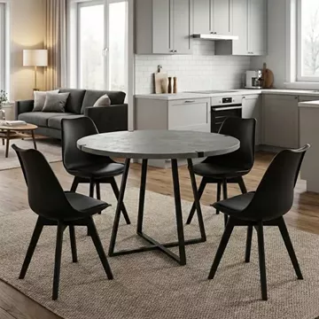 Σετ τραπεζαρία 5τμχ Rubes - Viva Megapap χρώμα γκρι σκυροδέματος - μαύρο Ø100x78εκ.