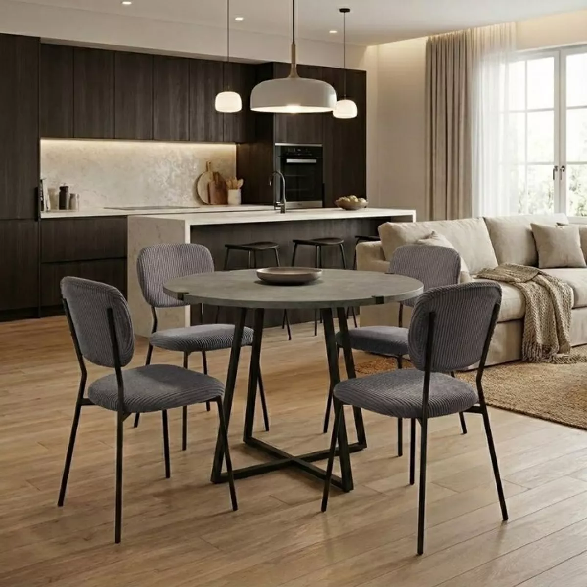 Σετ τραπεζαρία 5τμχ Rubes - Kevin Megapap χρώμα γκρι σκυροδέματος - ανθρακί Ø100x78εκ.