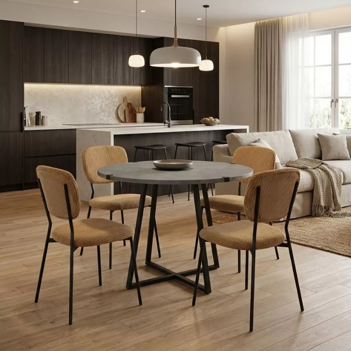 Σετ τραπεζαρία 5τμχ Rubes - Kevin Megapap χρώμα γκρι σκυροδέματος - μουσταρδί Ø100x78εκ.
