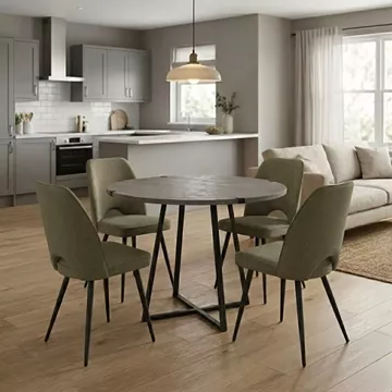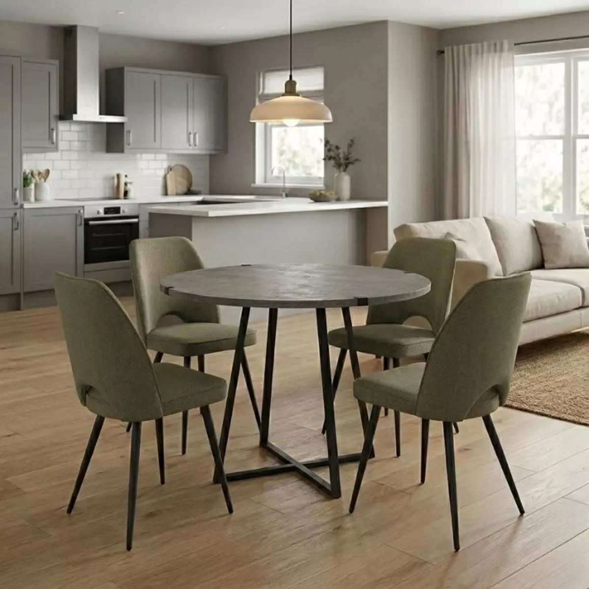 Σετ τραπεζαρία 5τμχ Rubes - Christy Megapap χρώμα γκρι σκυροδέματος - λαδί Ø100x78εκ.