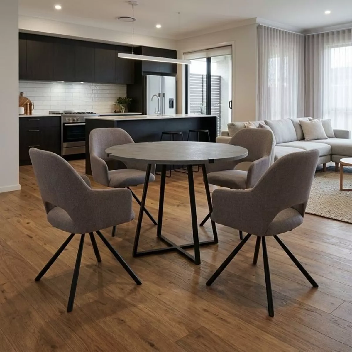 Σετ τραπεζαρία 5τμχ Rubes - Gabriel Megapap χρώμα γκρι σκυροδέματος - ανοιχτό μπεζ Ø100x78εκ.