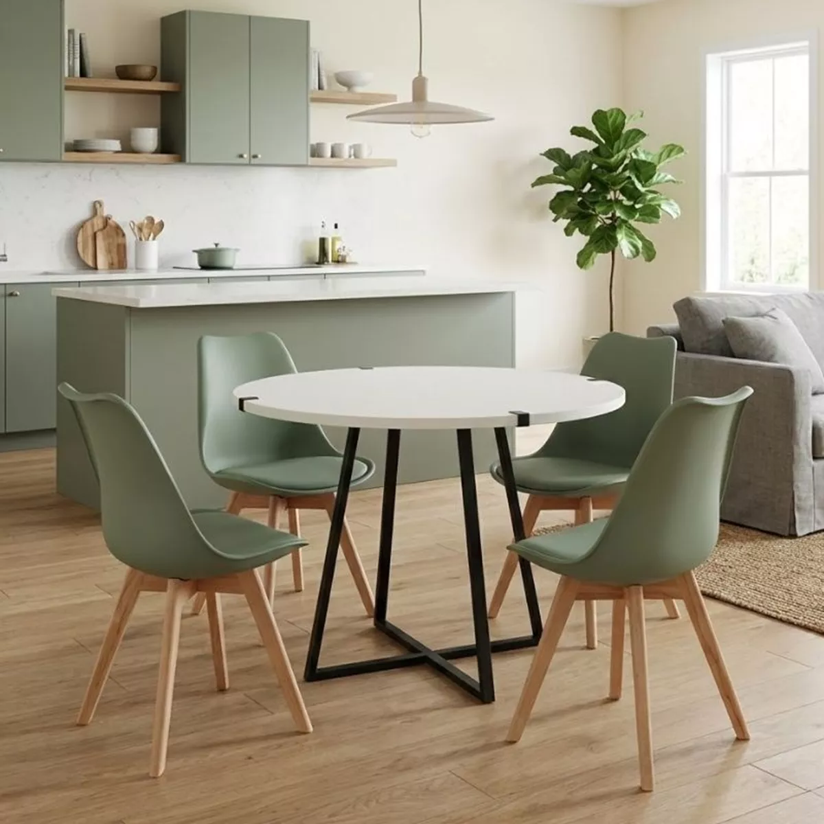 Σετ τραπεζαρία 5τμχ Rubes - Viva Megapap χρώμα λευκό - φυστικί Ø100x78εκ.