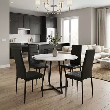 Σετ τραπεζαρία 5τμχ Rubes - Rosa Megapap χρώμα λευκό - μαύρο Ø100x78εκ.