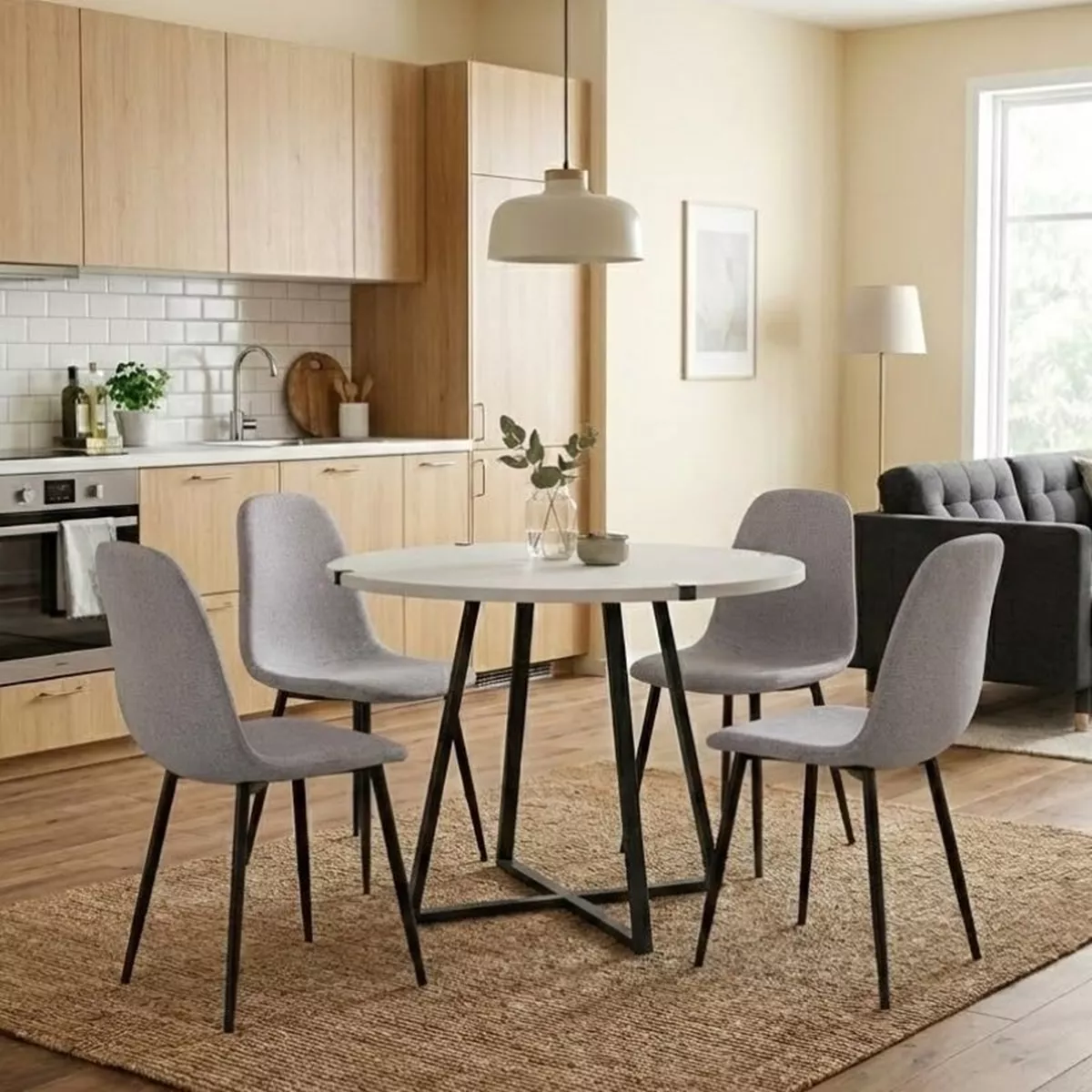Σετ τραπεζαρία 5τμχ Rubes - Iris Megapap χρώμα λευκό - ανοιχτό μπεζ Ø100x78εκ.