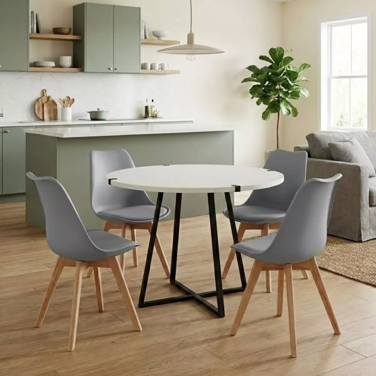 Σετ τραπεζαρία 5τμχ Rubes - Viva Megapap χρώμα λευκό - γκρι Ø100x78εκ.