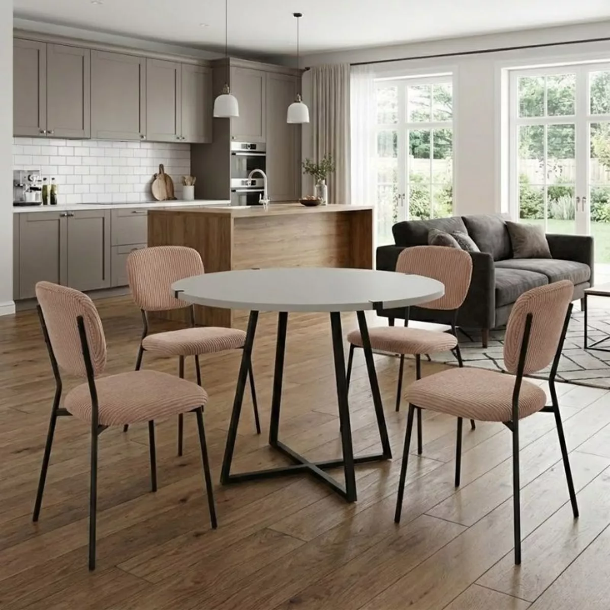 Σετ τραπεζαρία 5τμχ Rubes - Kevin Megapap χρώμα λευκό - μόκα Ø100x78εκ.