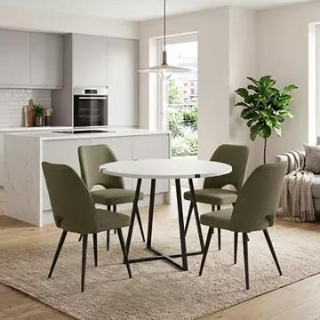 Σετ τραπεζαρία 5τμχ Rubes - Christy Megapap χρώμα λευκό - λαδί Ø100x78εκ.