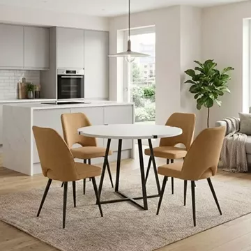 Σετ τραπεζαρία 5τμχ Rubes - Christy Megapap χρώμα λευκό - μουσταρδί Ø100x78εκ.