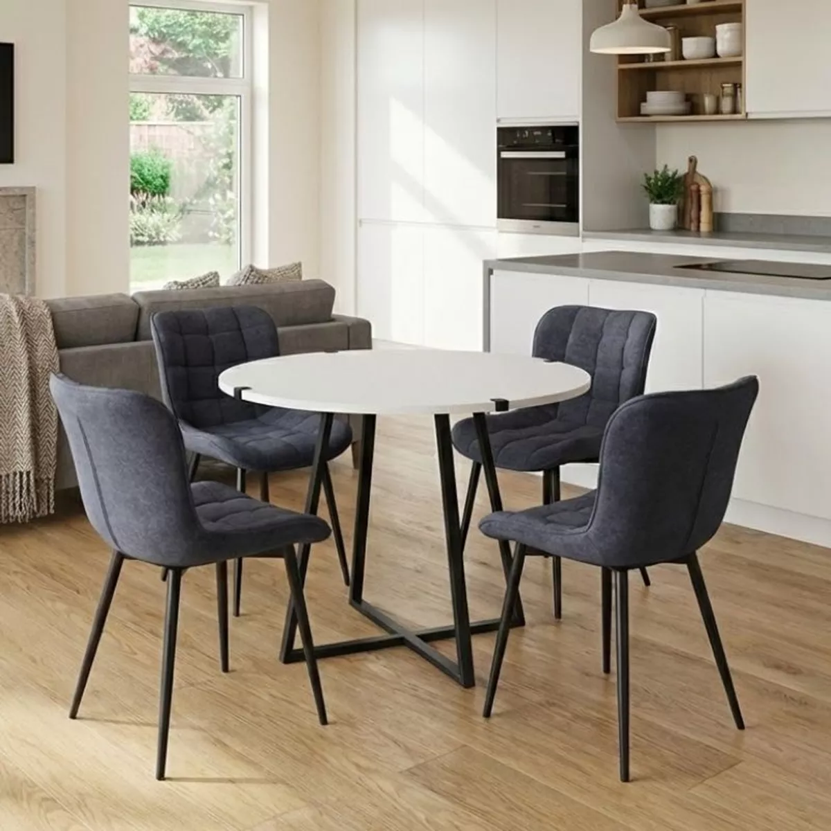 Σετ τραπεζαρία 5τμχ Rubes - Chiara Megapap χρώμα λευκό - ανθρακί Ø100x78εκ.