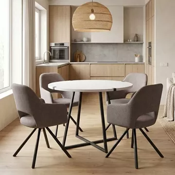 Σετ τραπεζαρία 5τμχ Rubes - Gabriel Megapap χρώμα λευκό - ανοιχτό μπεζ Ø100x78εκ.