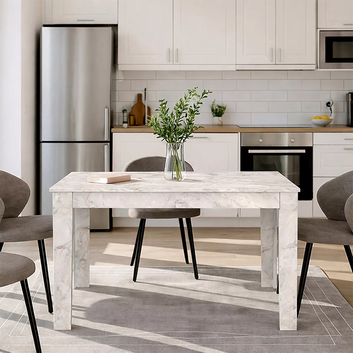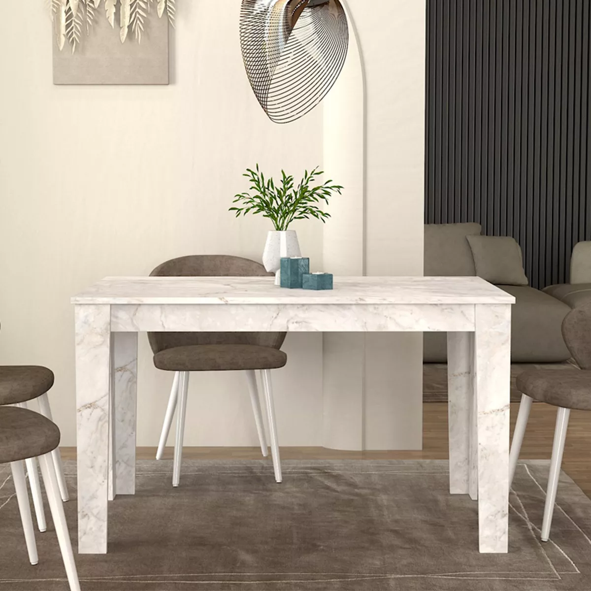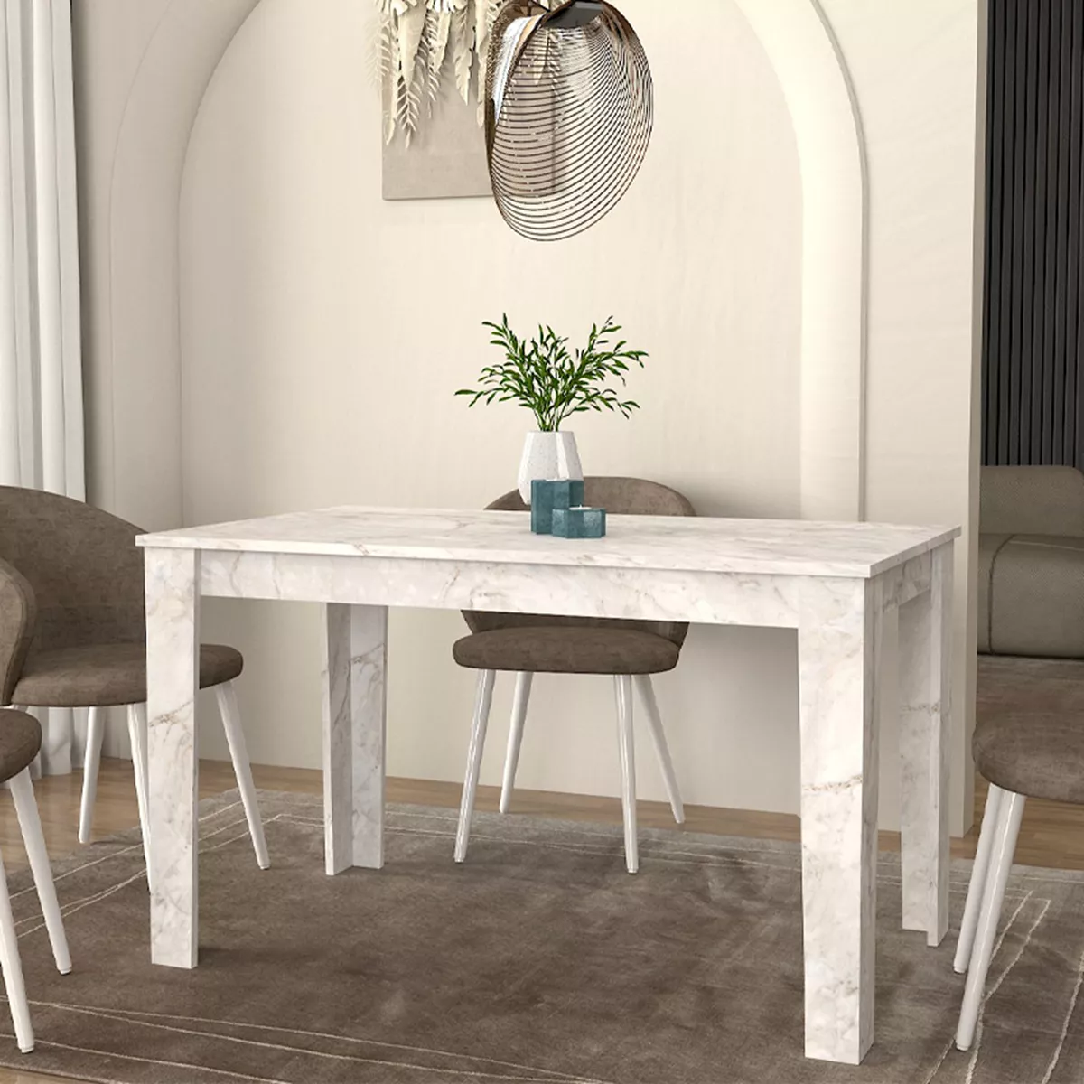 Τραπέζι Darlen Megapap χρώμα λευκό εφέ μαρμάρου 125x72x74εκ.