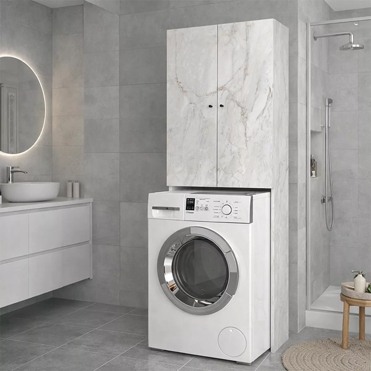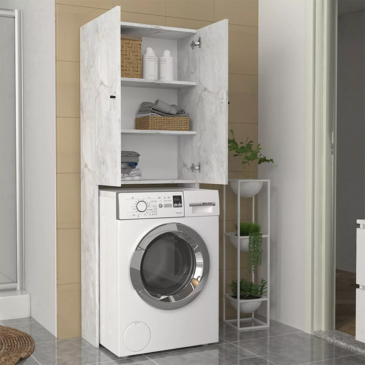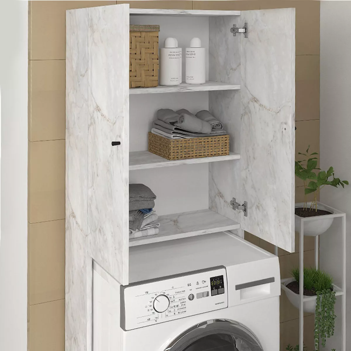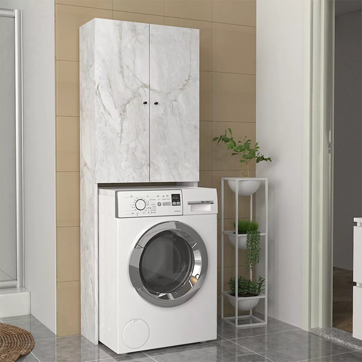 Έπιπλο πλυντηρίου Romme Megapap χρώμα λευκό εφέ μαρμάρου 65x27,1x180εκ.