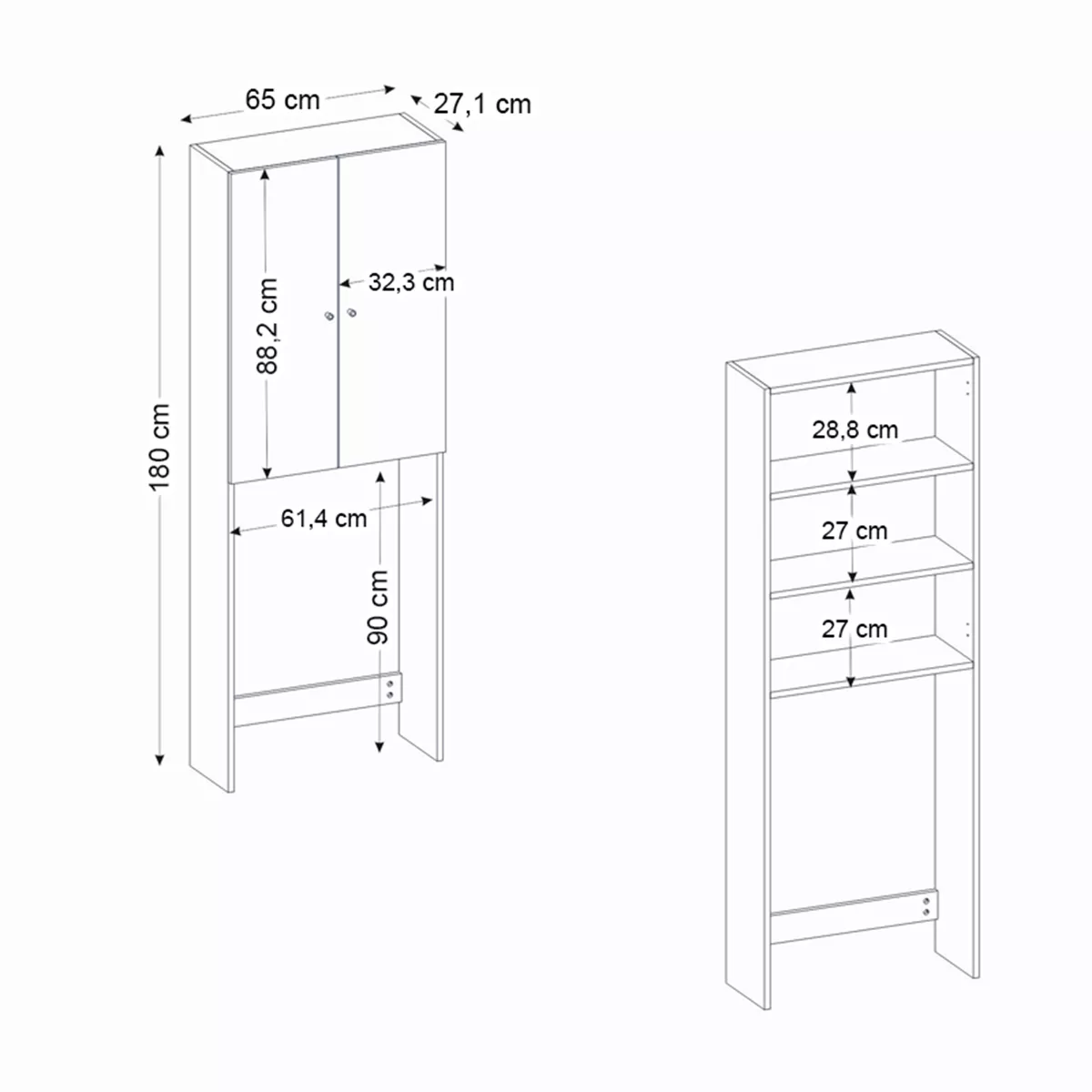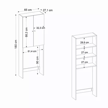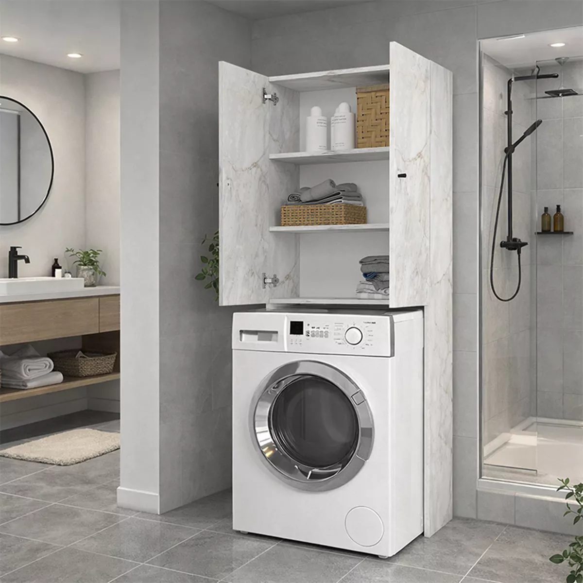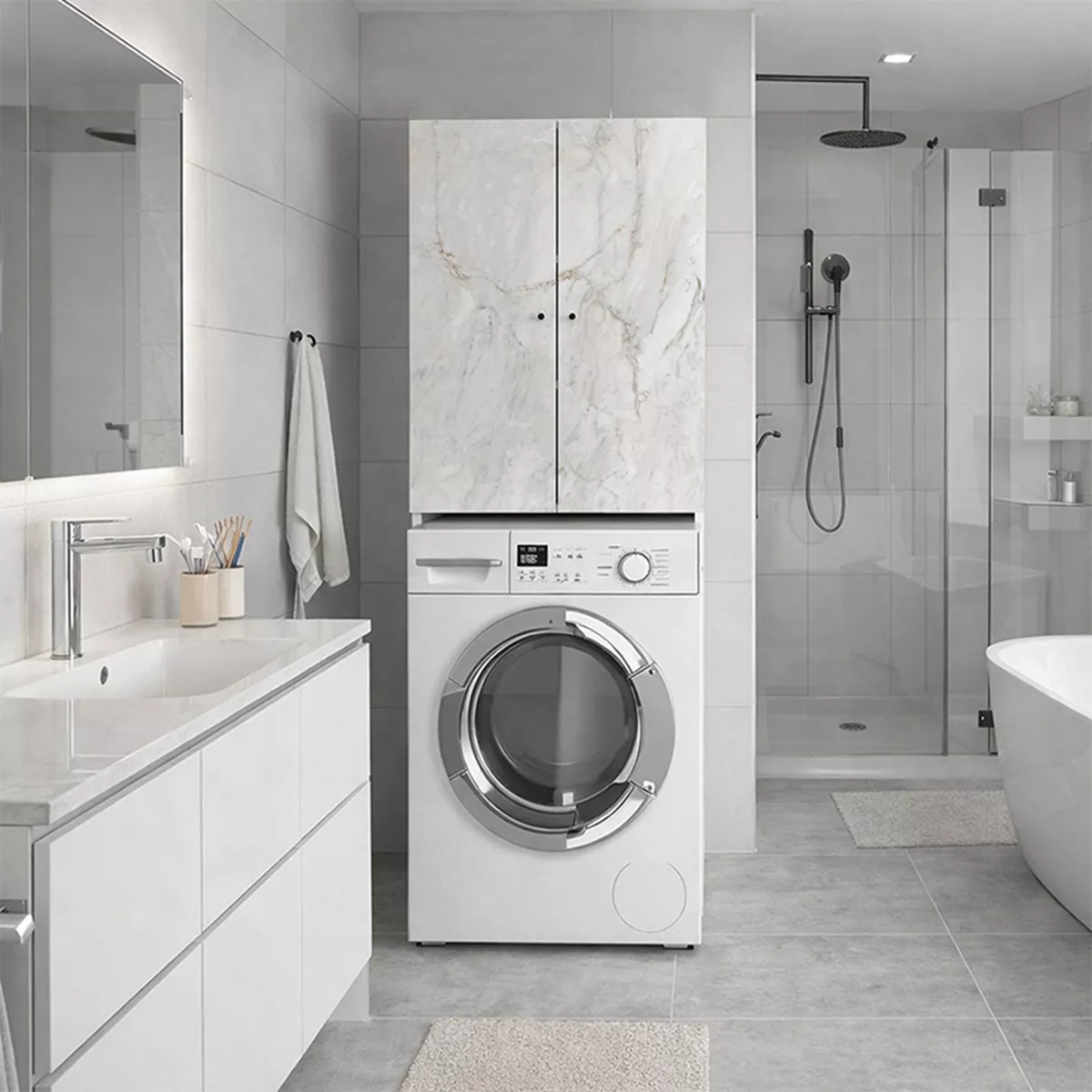 Έπιπλο πλυντηρίου Romme Megapap χρώμα λευκό εφέ μαρμάρου 65x27,1x180εκ.