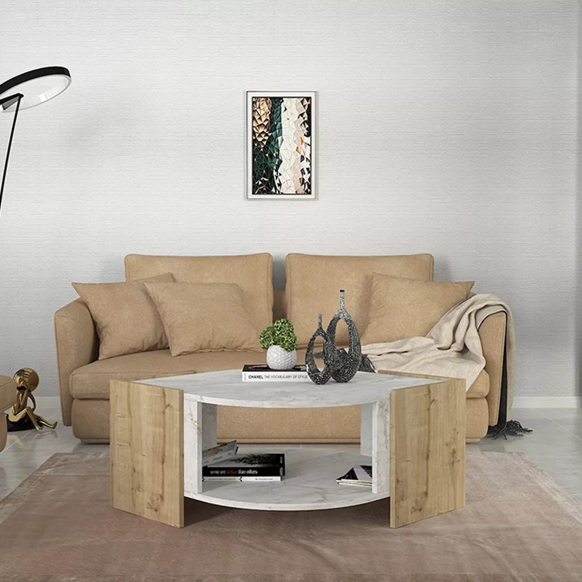 Τραπεζάκι σαλονιού Marbel Megapap χρώμα sapphire oak - λευκό εφέ μαρμάρου 75x75x40εκ.